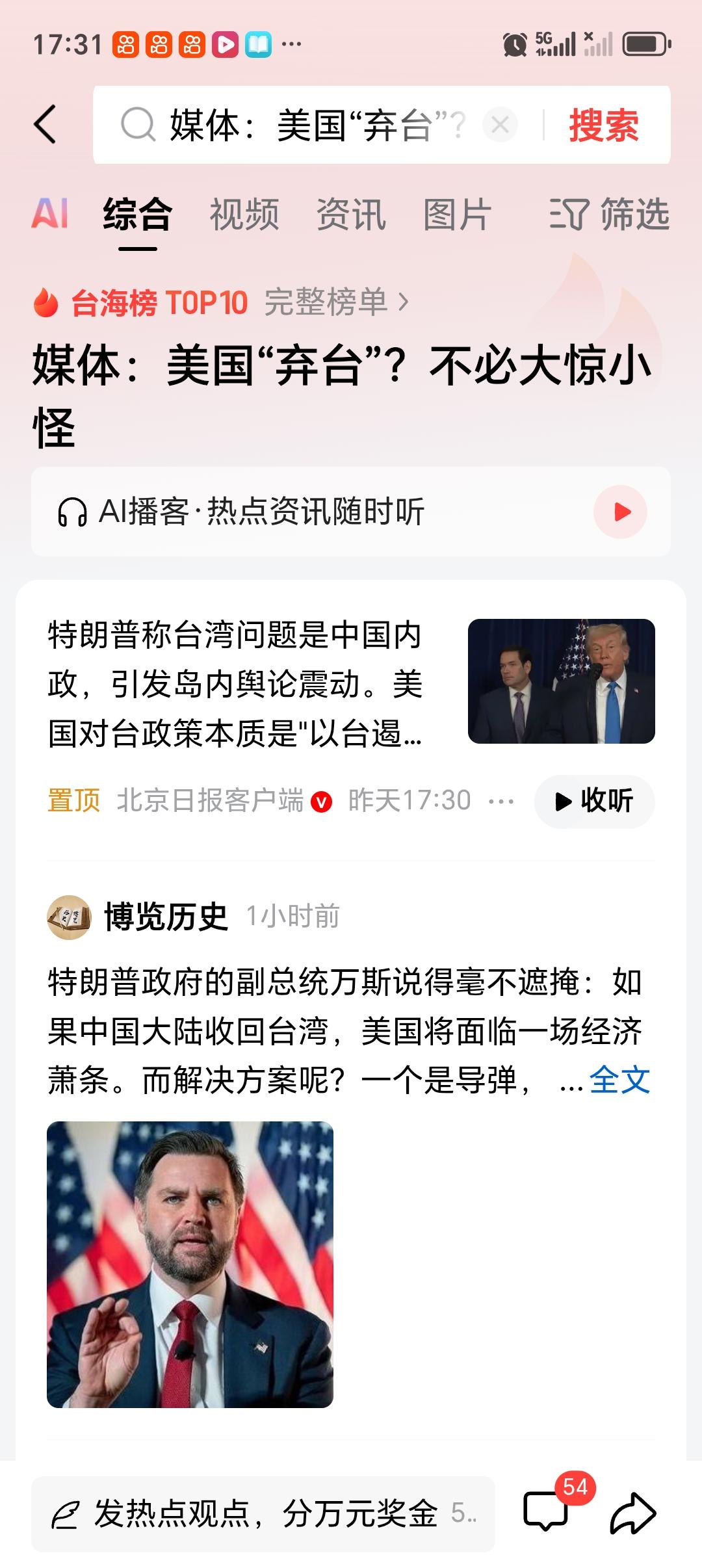 媒体:美国“弃台”?不必大惊小怪 特朗普说“台湾问题是中国自己的事”,在岛内舆论场炸了锅。赖清德当局讳莫如深,蓝白阵营却一片叫好,大家都看出了美方“弃台”趋势。但这真不必大惊小怪。 美国对台政策本质一直是“以台遏华”,台湾就是其用完即弃的“棋子”和“提款机”。从“莱猪”到高价军售,再到让台积电迁厂,美国对台湾敲骨吸髓。赖清德当局“倚外谋独”是死路,还编造谎言制造恐慌掩盖施政失败,拿台湾民众当赌注。美国反复无常,这次表态可能是为谈判筹码。而这对大陆来说,是推动统一的好机会。