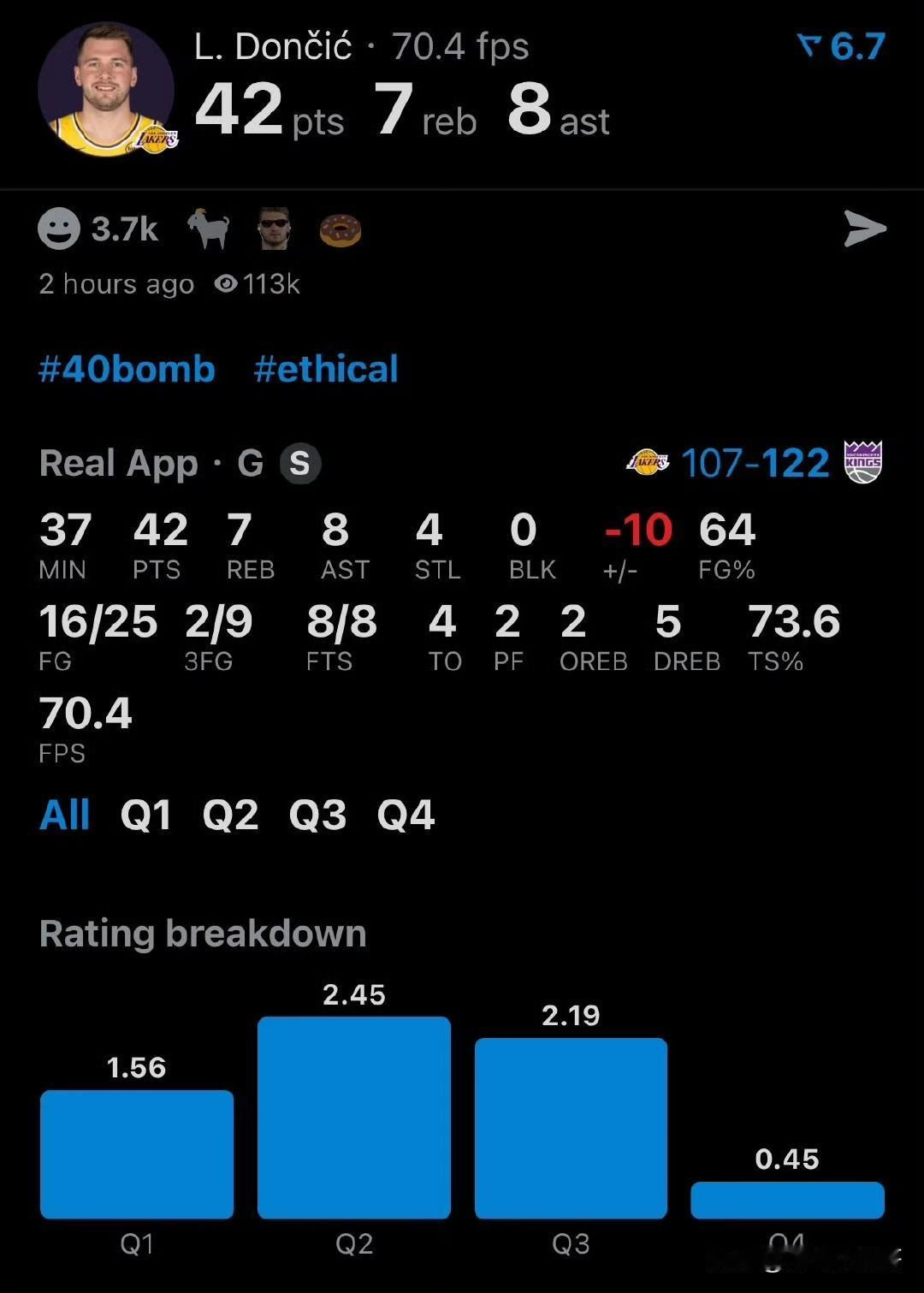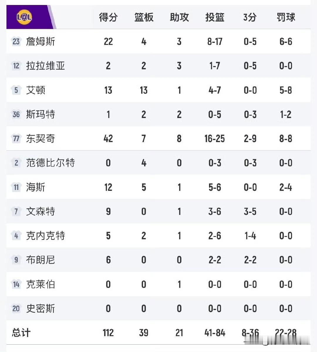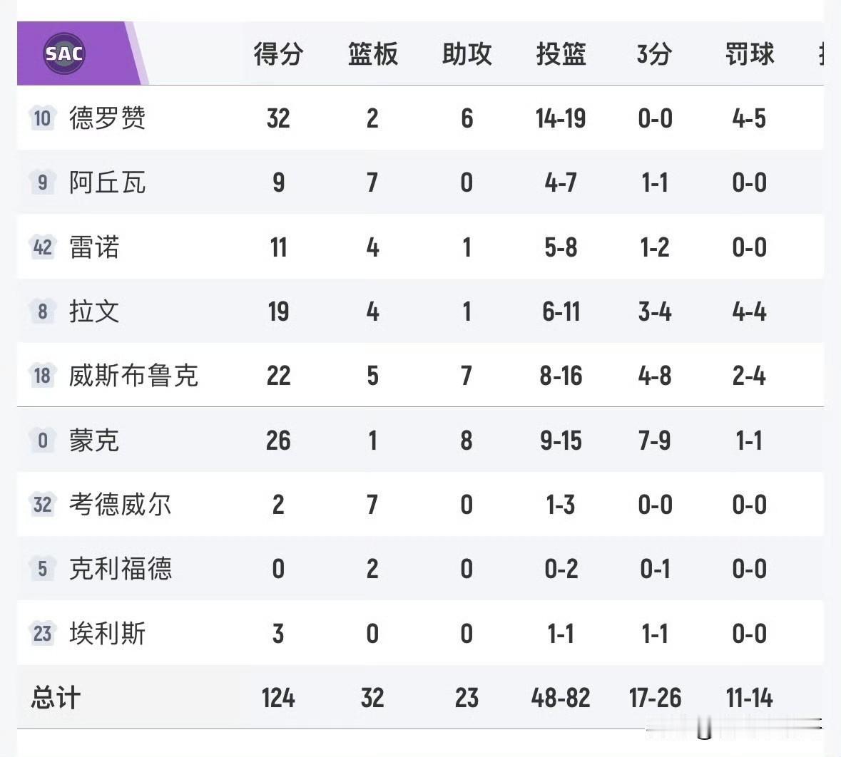 谁才是真正的国王!!!德罗赞32分,威少22+5+7,国王送湖人3连败! 国王背靠背主场迎战湖人,按照昨天的比赛预测来看应该是一边倒的局势,国王应该惨败湖人,但是果然湖人没有让大家失望,他们惨败给了国王,送国王两连胜的同时自己遭遇了三连败。 湖人方面: 东契奇独揽42分7篮板8助攻的全能表现,但是他的正负值依然是-10,詹姆斯贡献22分,其他球员没能再上20+。 国王方面: 德罗赞32分,投篮19中14,中投小王子名不虚传;威少22分,蒙克26分,这还是缺少小黑的情况下。 国王这次成了真正的国王,他们打得非常出色,尤其是三分球26中17,而湖人方面只有36中8,两队差距相当大。 还是我们昨天说的,即使是联盟倒数的球队也不要小瞧他们,任何一支球队都可以掀翻对手,有时候过于放松就会自尝恶果,湖人明天背靠背继续加油吧。 湖人 nba 湖人 威少 德罗赞 詹姆斯