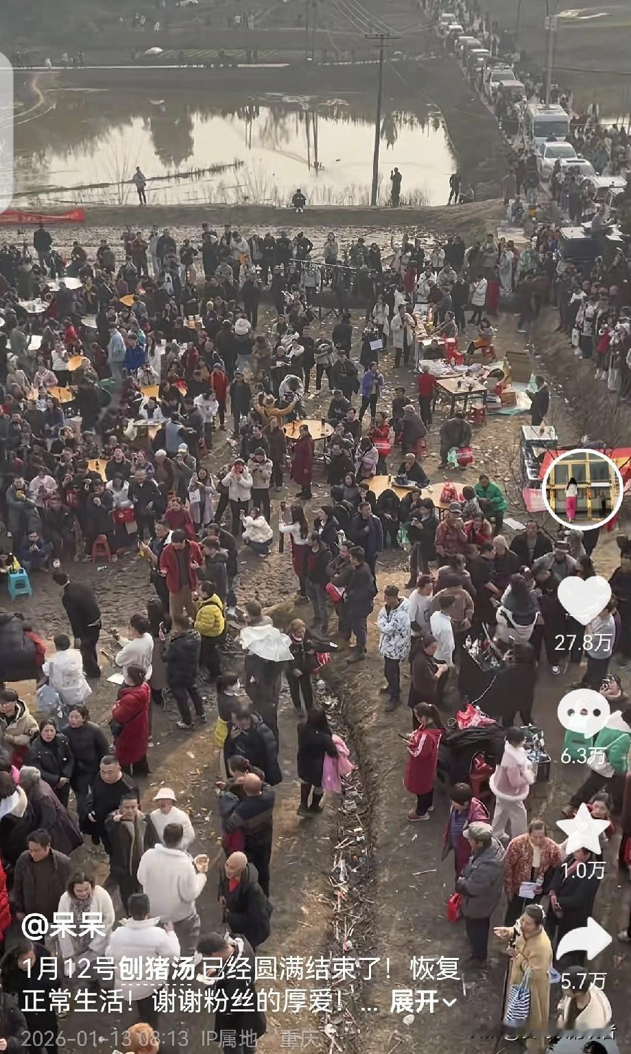 昨天还是人山人海, 今天已经是人去地也翻新了, 一切好像做了一场梦, 对合川呆呆来说, 却经历了人生中第一场万人杀猪宴, 更是掀起了全国网友的欢乐狂潮, 生活看似又恢复了平静, 这场杀猪宴呆呆只是起了个开场, 全国各地的杀年猪盛宴陆续跟进, 不管是跟风还是模仿, 接地气的欢乐却是属于每一个人的。 合川杀年猪 合川杀猪宴 呆呆杀猪宴