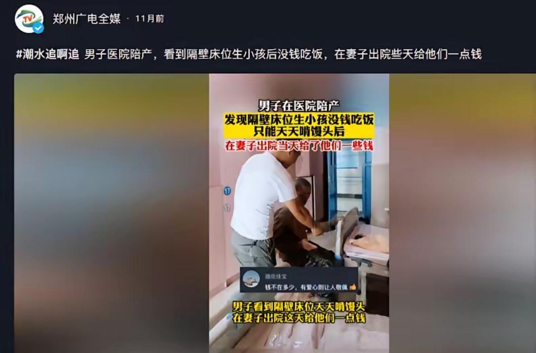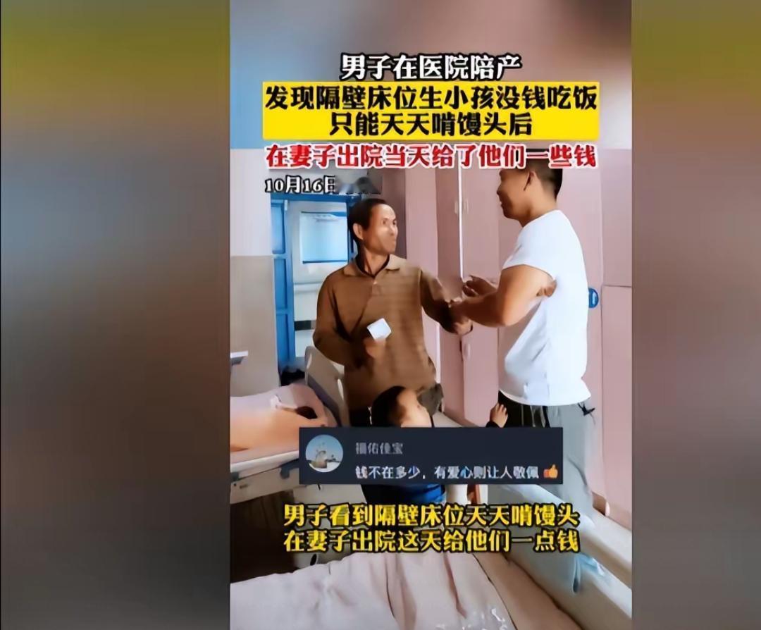 病房里的热饭,才是人间最实在的善意 你敢信吗?同样是医院病房,有人为孕妻顿顿换着花样补营养,有人却只能一家三口啃馒头就咸菜。贵州王先生的一个举动,直接戳中了无数人心里最软的地方。陪产时撞见邻床的窘迫,他没当看客,转身就拎来热乎饭菜,出院时还悄悄塞了红包。这哪里是简单的帮忙,分明是把别人的难处放在了心上。 总有人说善良很贵,可王先生的善意,不过是顺手多带的几份饭,是力所能及的一点钱。那些喊着“无能为力”的人,缺的从来不是钱,是那份看见他人苦难时,愿意伸把手的共情。 别再说什么善有善报太缥缈,你递出去的热饭,暖的是别人的胃,更是人心。你身边有没有过这样的暖心小事?评论区聊聊吧。