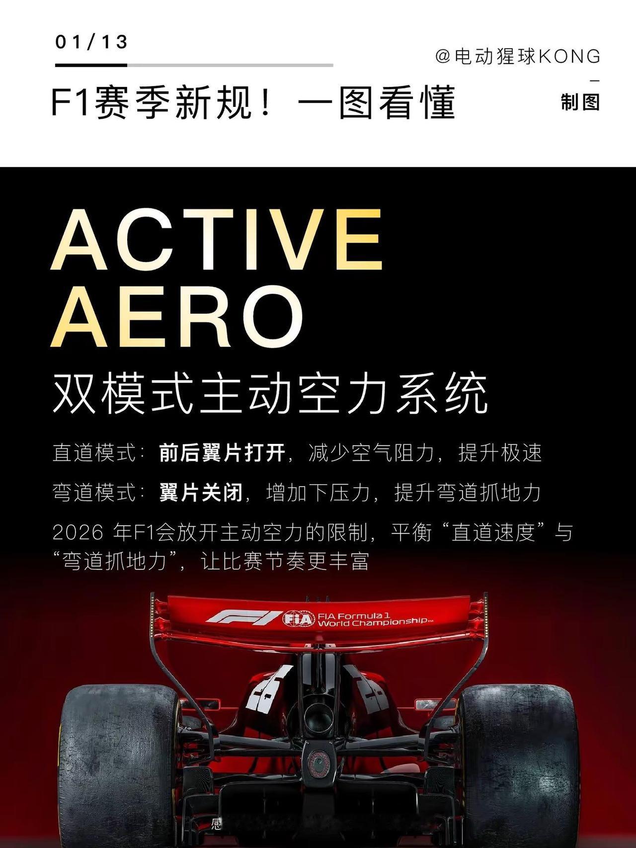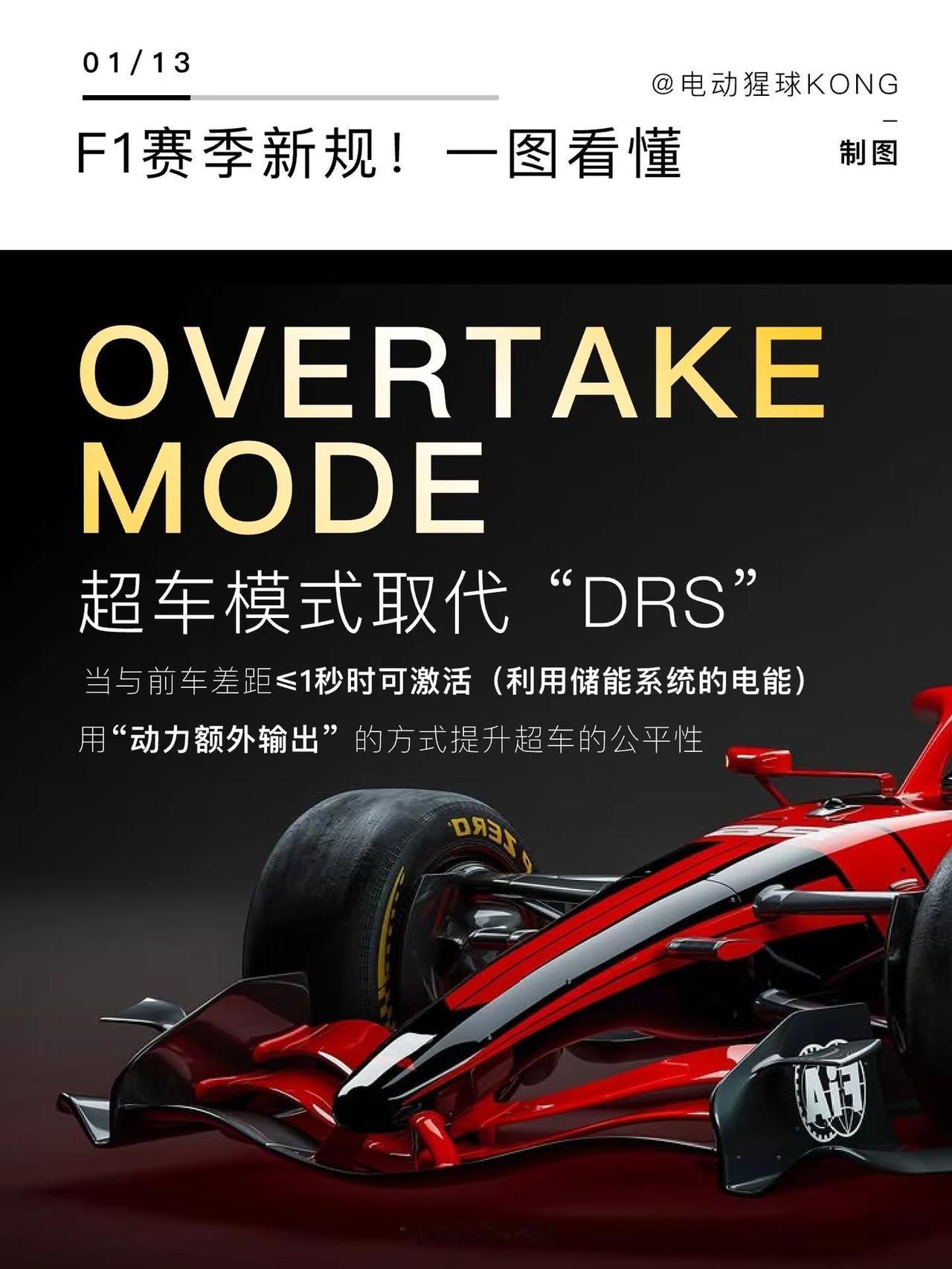 再见了,DRS!新规则一图看懂。F1 2026赛季新规一图看懂,DRS被超车模式取代,并且增加车手主动可调前后翼,感觉更考验操作和策略了,下赛季你看好哪队?F1