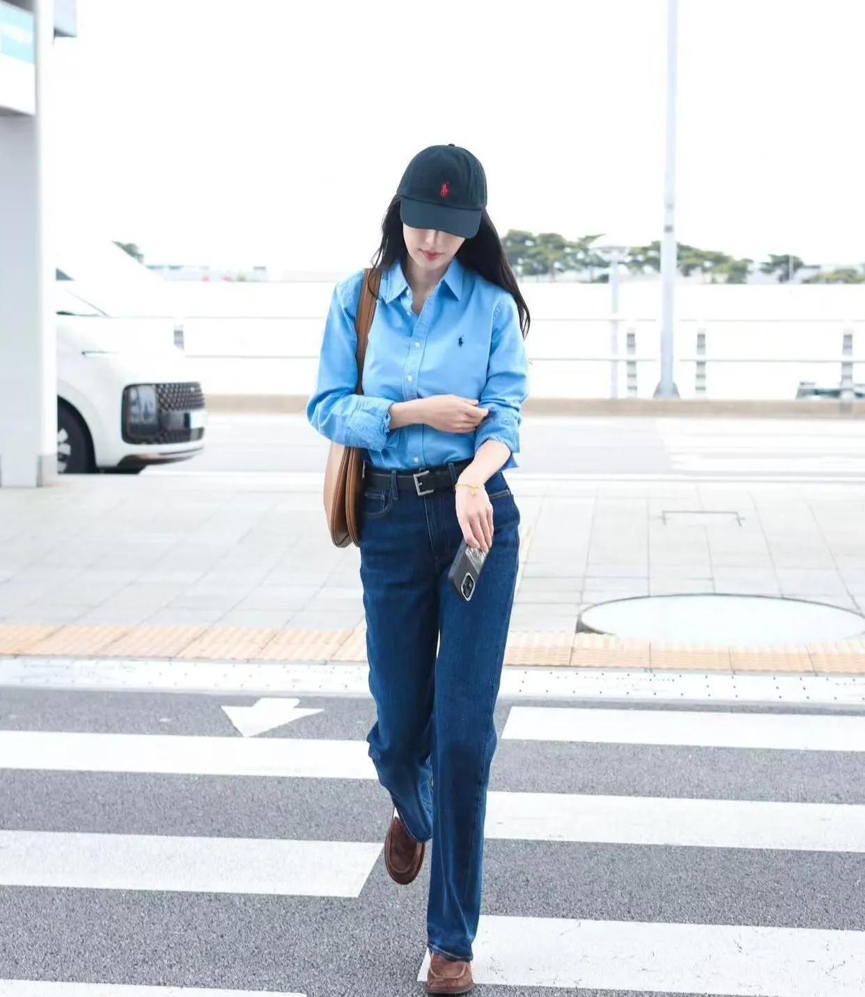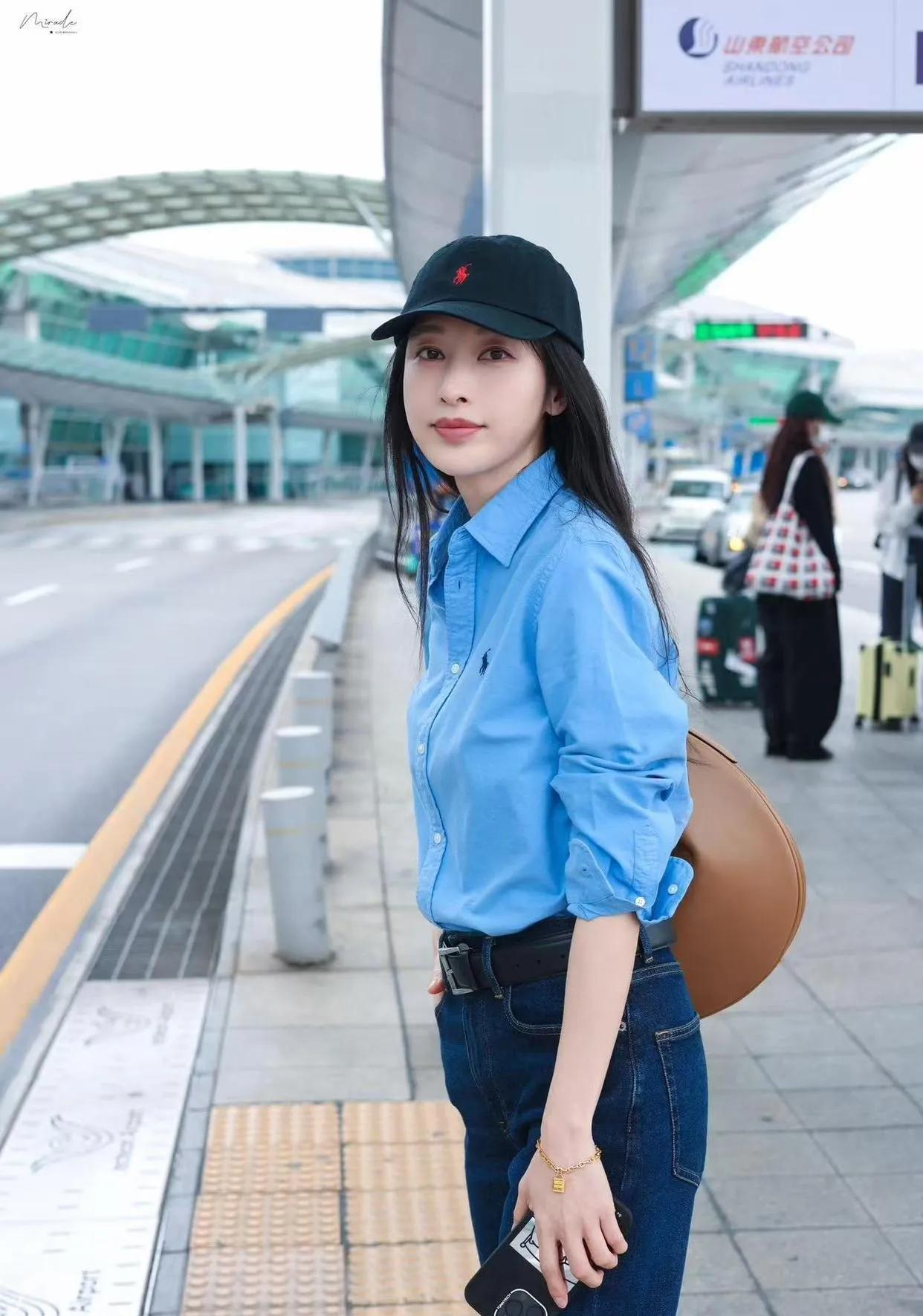 张俪的机场私服又赢麻了!一件清爽的蓝色衬衫+高腰牛仔裤,再配上一顶黑色棒球帽,整套造型简约又时髦,把“减龄”和“高级感”完美融合。她的状态松弛又舒展,笑容明媚又温柔,完全是普通人能直接抄作业的穿搭模板!张俪