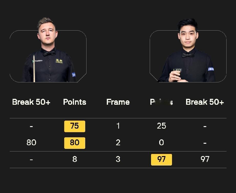 凯伦·威尔逊2-1斯佳辉 1月13日21点,2026年斯诺克大师赛首轮第五场