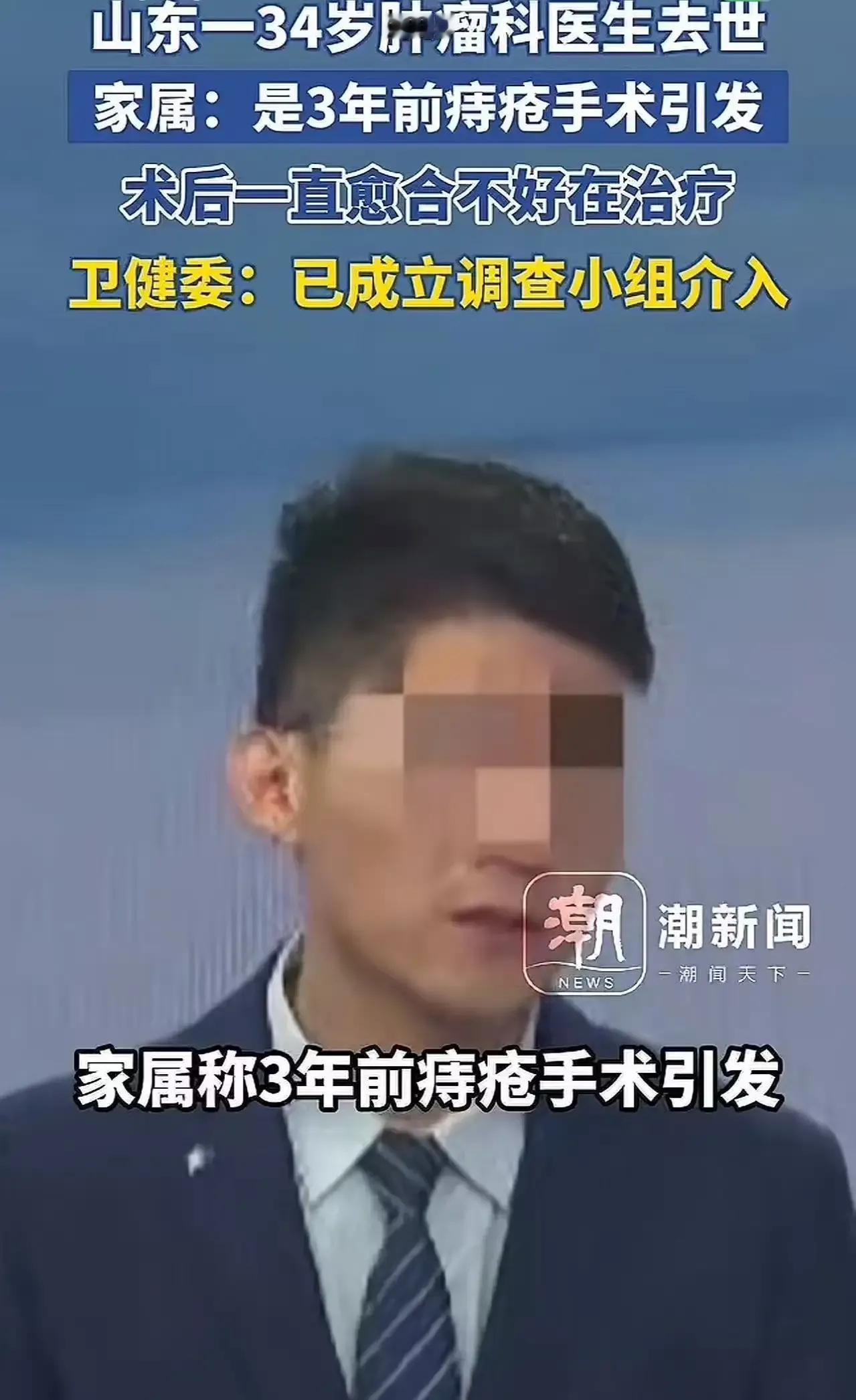 山东,一34岁肿瘤科医生去世,家属称是3年前在本院做的痔疮手术引发,术后一直愈合