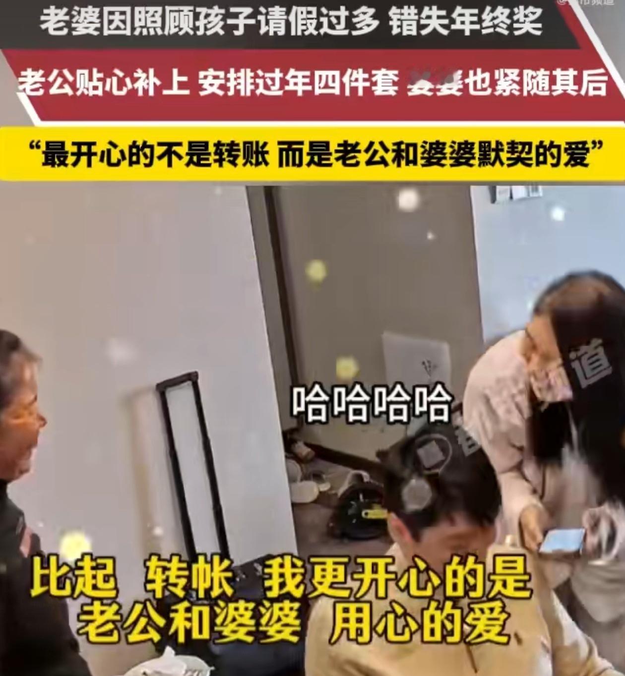 狠狠羡慕了!江苏一位宝妈因被扣年终奖而郁闷,老公和婆婆直接转了1万:这“撑腰四件套”比年终奖香太多啦! 近日重庆一宝妈因为申请育儿请假被扣了年终奖,本就心里不好受,万万没想到结果马上就迎来老公和婆婆的“双份转账惊喜”,一共1万,就为了让她去置办过年四件套。这哪是单纯转钱买床品,分明是把“我们知道你辛苦啦”写进了转账备注里! 瞧瞧宝妈平时的生活:白天在职场奋勇拼搏,晚上回家又得全身心照顾孩子。请假带娃还要被扣奖金,换做谁不得暗自神伤?但老公和婆婆这波“默契配合”太让人感动了,没有多余的言语,直接用行动表明:你的付出我们都看在眼里,你的委屈我们来帮你化解。 这1万转账很暖心,但更让人羡慕的是背后的家庭氛围。有些家庭会为谁洗碗而争吵,而有些家庭却能主动回应对方的默默付出——老公下班回家会主动抱娃,让宝妈能歇一歇;婆婆会主动帮忙做晚饭,不让宝妈连轴转;在育儿的道路上,不只是喊着“妈妈加油”,而是“我们一起面对”。 好的家庭不是一方牺牲来换取补偿,而是你理解我在职场的艰辛,我心疼你带娃的劳累;你为家庭做出让步,我为你遮风挡雨。正如网友所说:“过年四件套温暖的是身体,家人的理解温暖的是心灵。”这种相互分担、双向奔赴,才是实实在在的幸福。 新的一年,希望每个默默付出的人都能被看见,每个家庭都有这样的“暖心默契”——无需昂贵的礼物,也不用华丽的话语,只要你的辛苦有人懂,你的付出有人分担,就是最让人安心的归属感。 事件触动公众的核心,在于将家庭情感劳动“可视化”,但深层期待是推动变革——从暖心补偿转向责任共担的制度化,从个体代偿升级为职场权益保障与社会政策支持。正如网友所言:“最好的家庭关系,是你难我帮、你苦我疼的双向奔赴”,而这份奔赴需落地于日常协作的真诚与系统性公平。 转账是爱的仪式感,但比一次性的补偿更重要的,是日常育儿责任的共同承担。如果丈夫和婆婆能将这种“看见”转化为平时更多的家务参与、育儿协作,家庭幸福的可持续性才会更强。 谁看了不说一句羡慕!神仙家庭婆婆疼儿媳,老公宠老婆,一家人的双向奔赴 没有抱怨和说教,只有满满的心疼和宠爱,这样的家庭氛围,真的比年终奖更让人觉得温暖 这宝妈被爱包围的样子,真的太幸福了!
