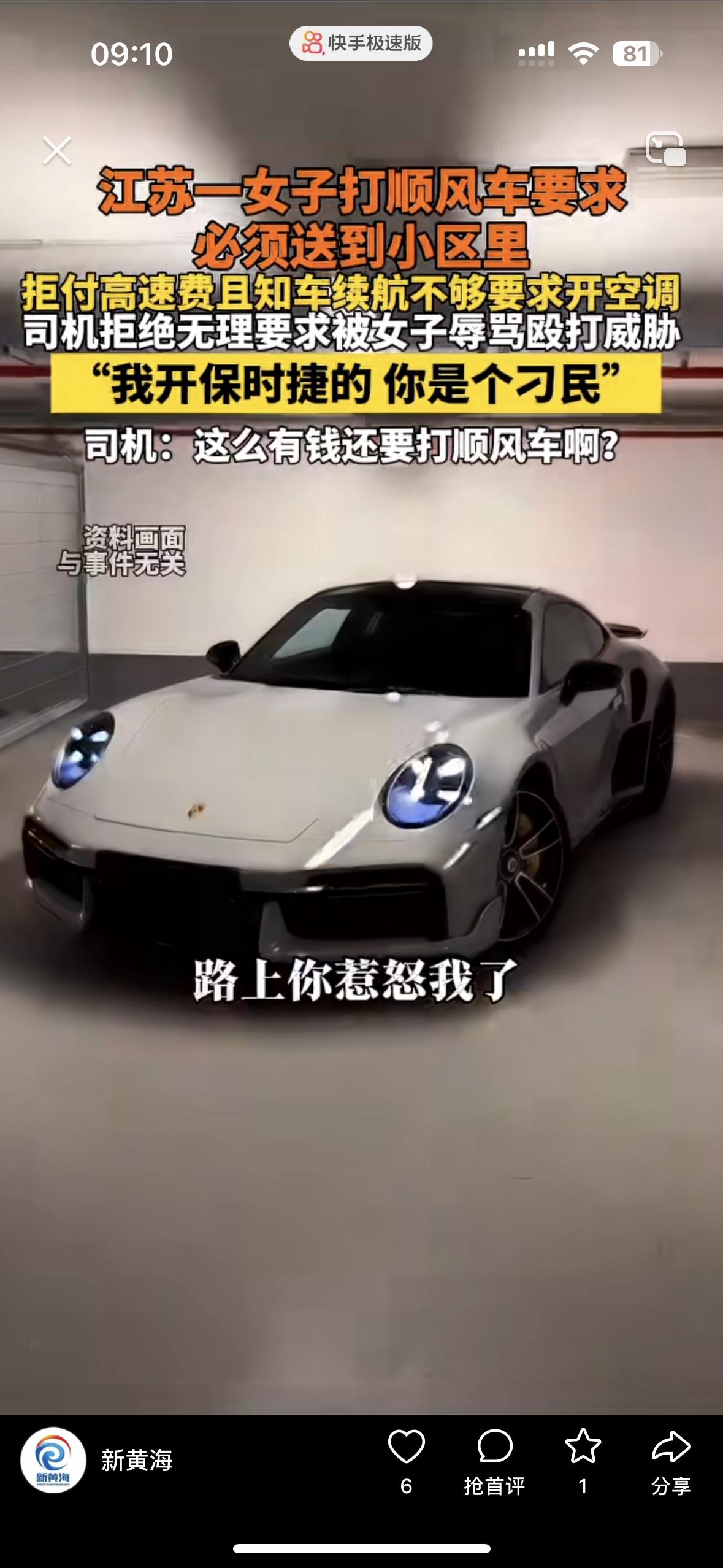 真搞不懂为什么这种人会觉得自己高人一等?开保时捷的乘客骂司机师傅,还动手打人 一位女乘客喝酒后打了顺风车,要求师傅把她送到小区里,拒绝付高速费,明知道车续航不够还要求司机开空调 司机师傅拒绝后,被这位女乘客辱骂了,说自己开保时捷的。司机说:你这么有钱不还是打顺风车吗?不仅如此,这位乘客还动手打了司机的头。顺风车就是顺路接乘客,和专车不同,价格也便宜很多。坐顺风车还想体验专车的服务,怎么可能呢? 拿开保时捷当“高人一等”的资本。要知道,职业无高低,人格有贵贱,顺风车司机靠劳动谋生,理应被尊重。所谓的豪车,从来不是肆意践踏他人尊严的底气。