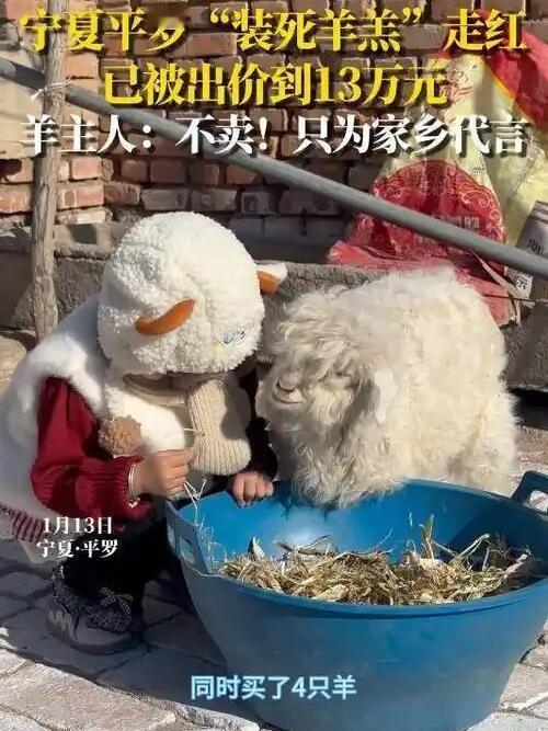 宁夏有只小羊火了,特别有意思。它一见到大人,就立马躺倒“装死”,跟演小品似的。但要是看见小孩,就特别温顺,像换了只羊。这“看人下菜碟”的劲儿,逗乐了不少人。 有人觉得稀罕,甚至出价13万要买。但羊主人不卖,说这羊有灵性,给再多钱也舍不得,就当个家里成员养着了。主人还想借着羊的这波名气,顺带推销推销宁夏的羊肉、枸杞这些特产,也算是个点子。 专家说,小羊这“装死”其实是一种动物自我保护的本能反应,叫强直性昏厥,可能是以前受过惊吓留下的。而且据说它特别针对穿大裤衩的成年人,不知道是不是有啥不好的回忆。 网上吵翻了,有人说主人做得对,这么有灵性的羊不该卖,好好养着。也有人说13万不是小钱,卖了能改善生活,给羊换个更好的环境也不是坏事。 还有网友开玩笑,说这羊演技炸裂,比某些演员都强。要我觉着吧,卖不卖都是人家的自由。感情这东西,有时候确实不是钱能衡量的。留着当个伴儿,还能带点人气搞点副业,也挺好。只要对羊好,别纯粹为了流量折腾它,怎么选都没毛病。