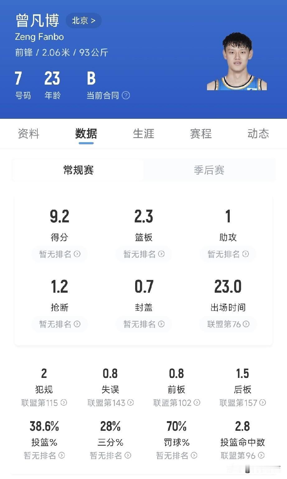 曾凡博以后别老想着去NBA了,再这么下去,CBA都打不了了! 场均9.2分2.3篮板1助攻,整体命中率为38.6%,三分球命中率更是低至28%。 在CBA都只能拿这个数据,还想去打NBA,岂不是痴人说梦话? 进攻没有,防守也是被一步过,本赛季除了首战面对缺兵少将的广东,还有过好的发挥吗?