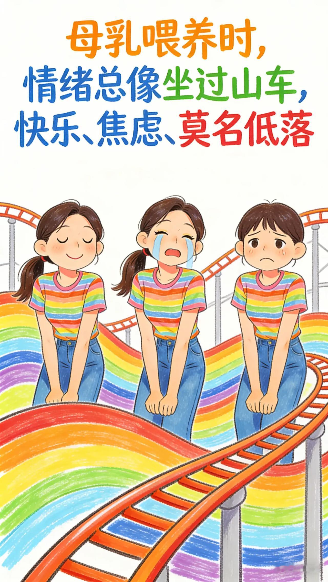 母乳喂养:母乳喂养与妈妈的情绪管理。新手妈妈们,是不是感觉在母乳喂养期间,情绪就像坐过山车一样?一会儿因为宝宝吃得好、长得胖而开心,一会儿又因为自己乳汁不足、喂奶疼痛等问题焦虑、沮丧,甚至有时候会莫名地烦躁、发脾气,知道这样不好,却又很难控制自己的情绪。科学原理母乳喂养期间,妈妈体内的激素水平会发生显著变化,雌激素、孕激素等快速下降,泌乳素升高,这种激素的剧烈波动会影响妈妈的情绪。同时,照顾宝宝的压力、对母乳喂养知识的欠缺以及生活方式的突然改变,都可能给妈妈带来心理负担,导致情绪不稳定。而妈妈的情绪又会反过来影响乳汁分泌,负面情绪可能抑制泌乳素的分泌,使乳汁减少,形成恶性循环。具体方法学会自我调节:当感觉情绪不好时,尝试做几次深呼吸,慢慢地吸气,再缓缓地呼气,让自己的身体和心情逐渐放松下来。也可以在宝宝睡觉的时候,听一些舒缓的音乐,如古典音乐、大自然的声音等,帮助缓解压力和焦虑(此处可加妈妈听音乐放松的图片)。另外,写日记也是个不错的方式,把自己的感受和想法记录下来,有助于梳理情绪。寻求支持:不要独自承受压力,多和家人沟通,告诉他们你在母乳喂养过程中的困难和感受,让他们帮忙分担照顾宝宝的任务。比如,让丈夫帮忙换尿布、哄宝宝睡觉等。还可以参加一些妈妈互助小组,和其他母乳喂养的妈妈交流经验,互相鼓励和支持(此处可加妈妈们参加互助小组交流的图片)。常见误区误区一:认为情绪问题是自己太脆弱。很多妈妈觉得自己在母乳喂养期间情绪不好是因为自己不够坚强,其实这是由生理和心理多方面因素导致的,是很正常的现象,不要过分自责,要正视自己的情绪问题。误区二:觉得情绪不会影响母乳喂养。如前面所说,妈妈的情绪对乳汁分泌有重要影响,不良情绪可能导致乳汁减少,进而影响宝宝的喂养。所以,妈妈要重视自己的情绪管理,保持良好的心态。你在母乳喂养时,通过什么方式让自己心情变好呢?快来评论区分享,帮助更多妈妈。新手妈妈 新手妈妈看过来 新手妈妈必看 新手妈妈成长记