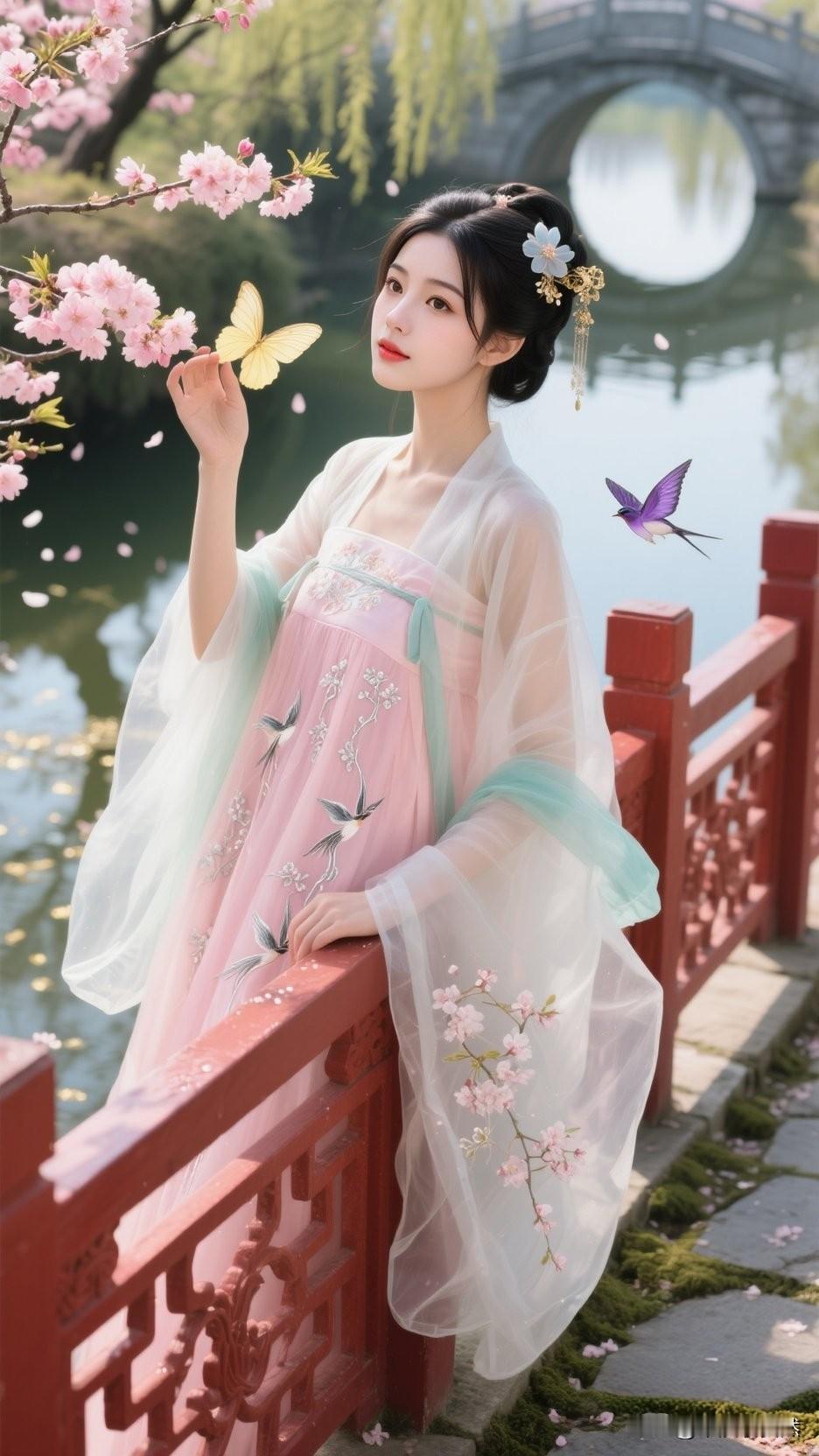 春日桥边立,花影入梦来。最是相思节,念念不忘怀。亭前花影