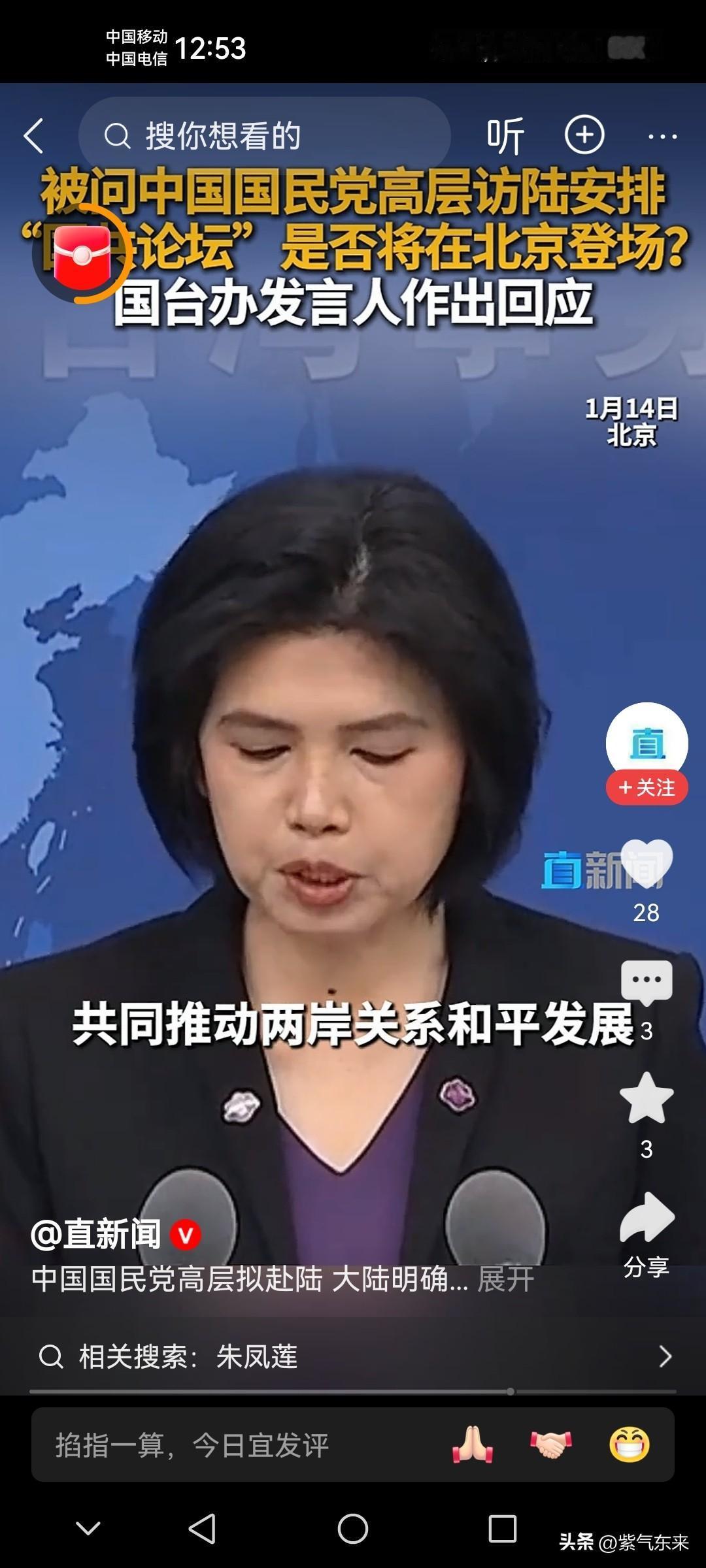中国大陆欢迎中国国民党高层来访 针对中国国民党高层来大陆访问安排,“国共论坛是否会安排北京?这敏感问题,国台办发言人给出了明确答复! 国台办发言人:在承认“九二共识”,反对台独的基础之上,加强两岸交流与合作,推动两岸关系和平发展,造福两岸人民,我们持欢迎态度! 两岸同属一家亲,不分彼此! 台湾自古以来就是中国的领土,台湾问题就是中国问题的内政和主权问题! 中国国民党来大陆交流访问,就跟回家一样! 蒋介石先生自始至终从未想过台湾独立!中国国民党 中国国民党高层