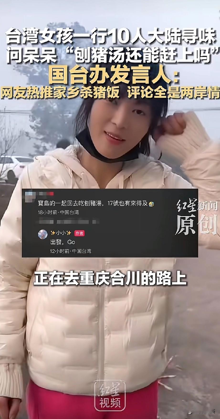 台湾女孩也想吃刨猪汤,一行十人正在往重庆合川赶来,重庆合川呆呆这次真是大火特火了,这是他根本都没有想到的事情,也是合川文旅没有想到的事情,一道普普通通的刨猪汤,居然引起如此轰动,堪称2026年开年最火的一件网络盛事!