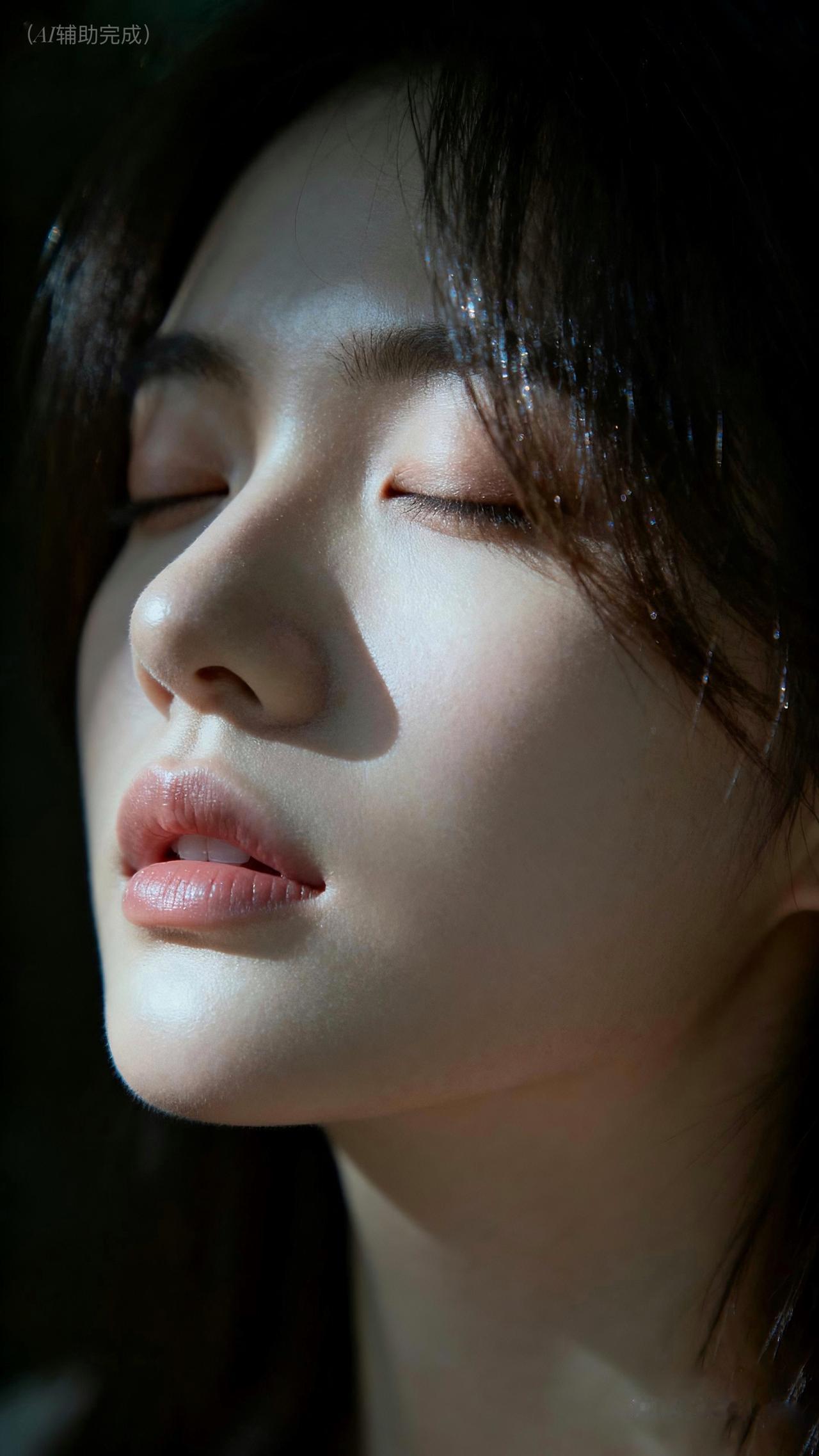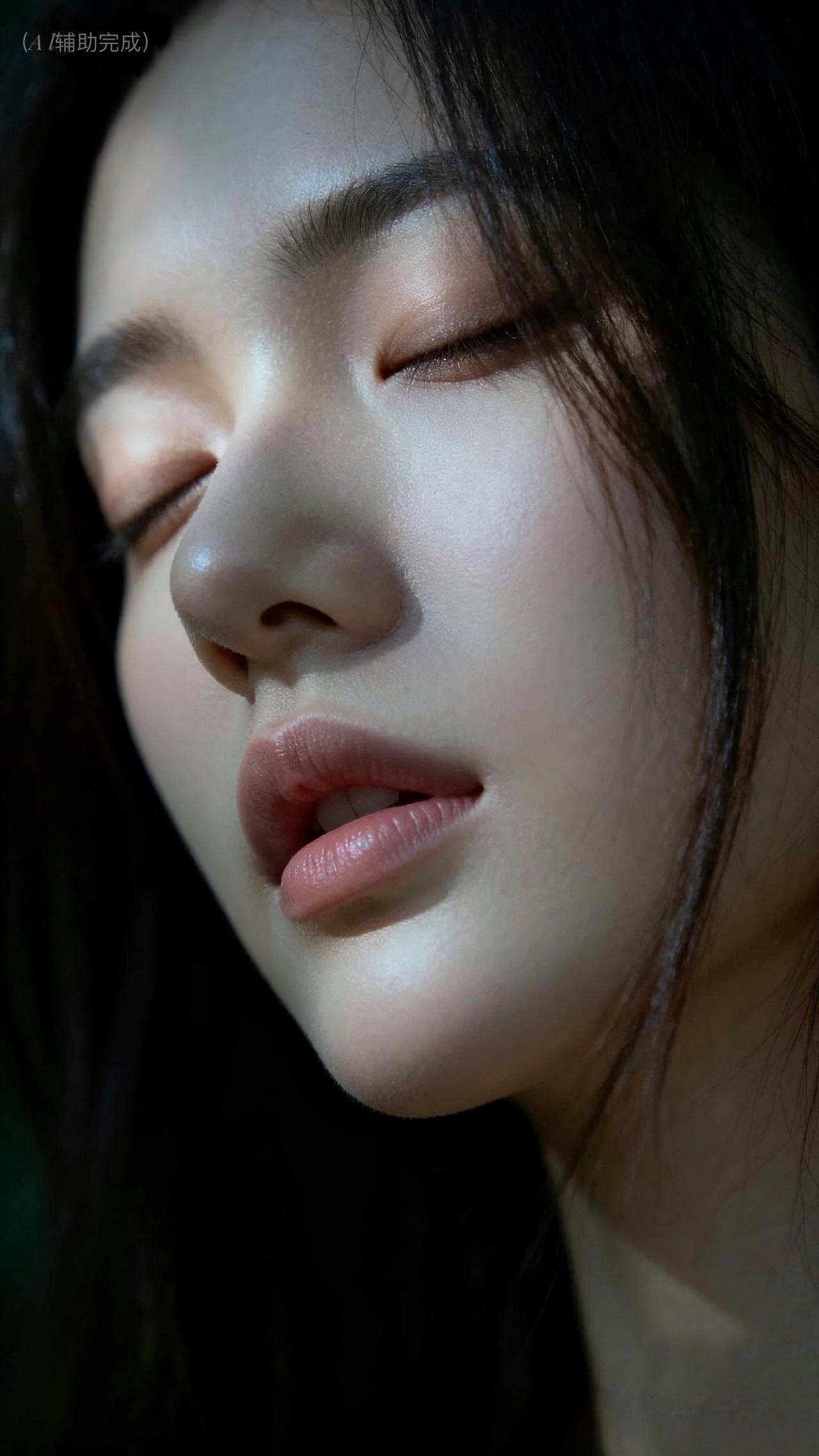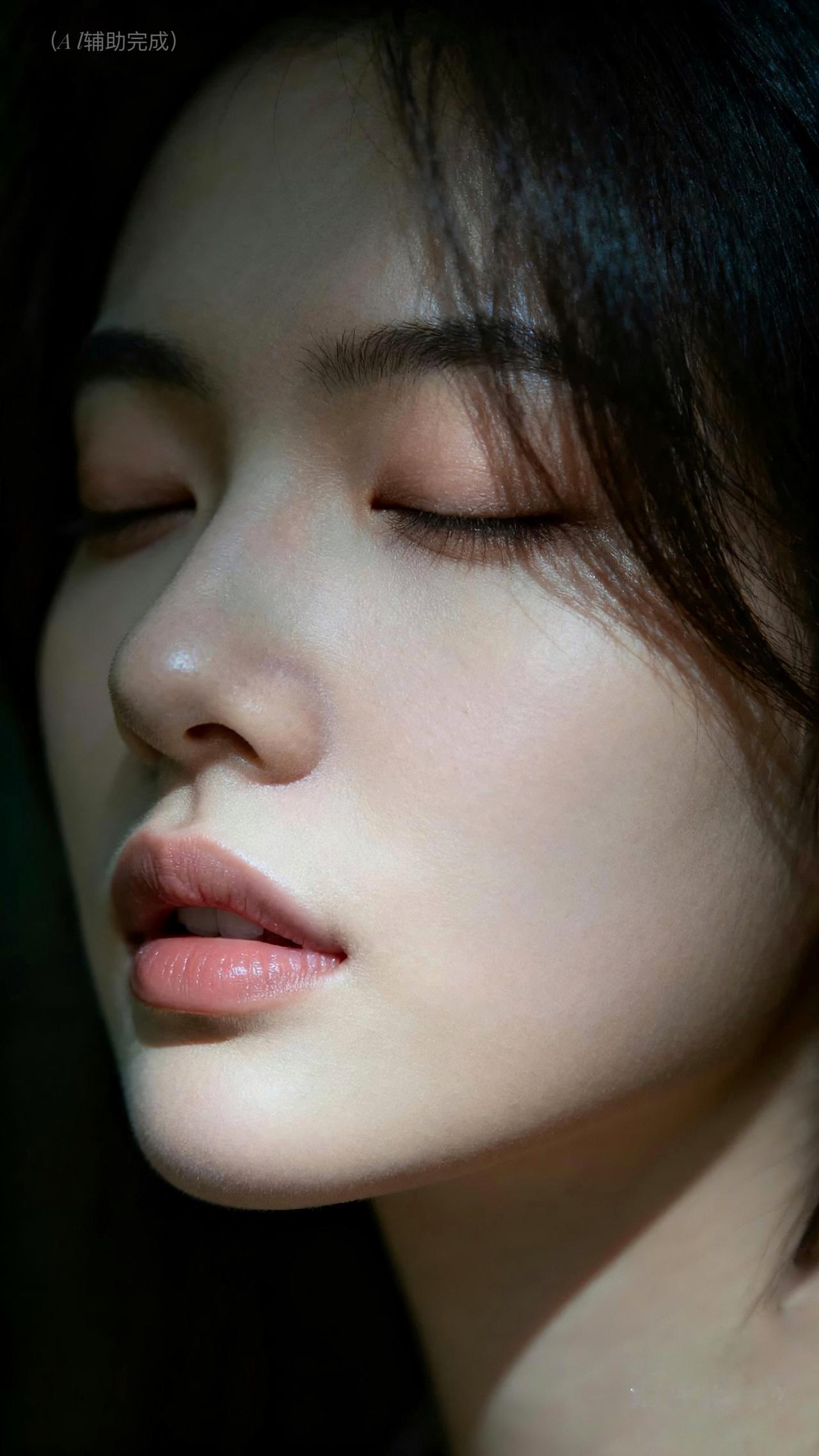 九帧皆藏静谧雅韵。睫若蝶翼垂,鼻梁如峰挺,粉唇微启似含笑。乌发垂肩泛柔光,光影织画境,暗背景衬得容颜更艳。东方温婉在静谧里漫开,这帧美,一眼沦陷。