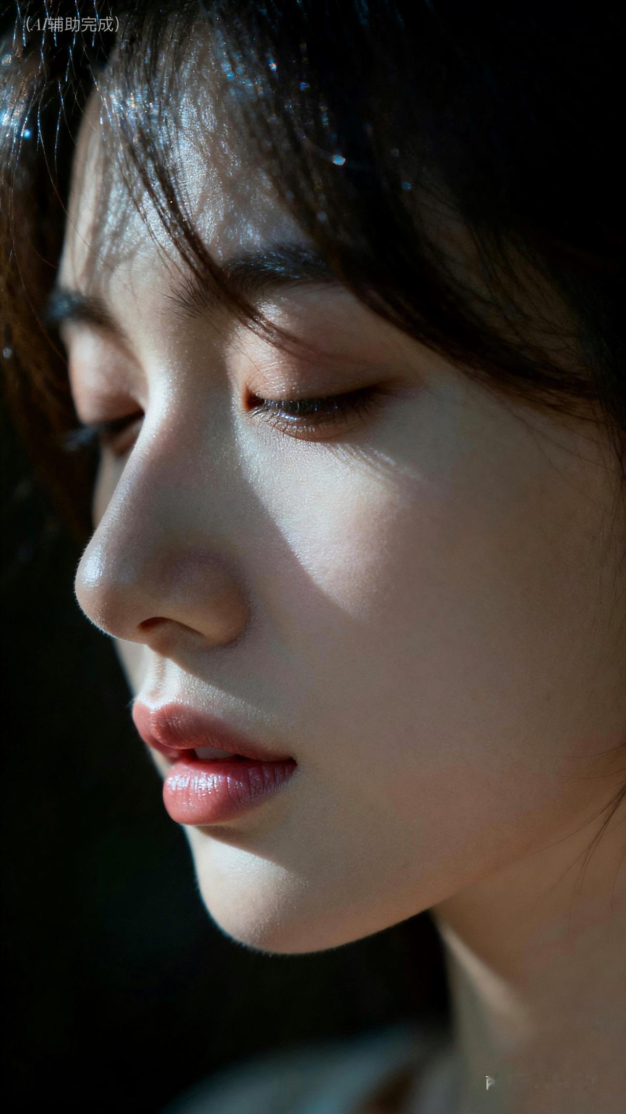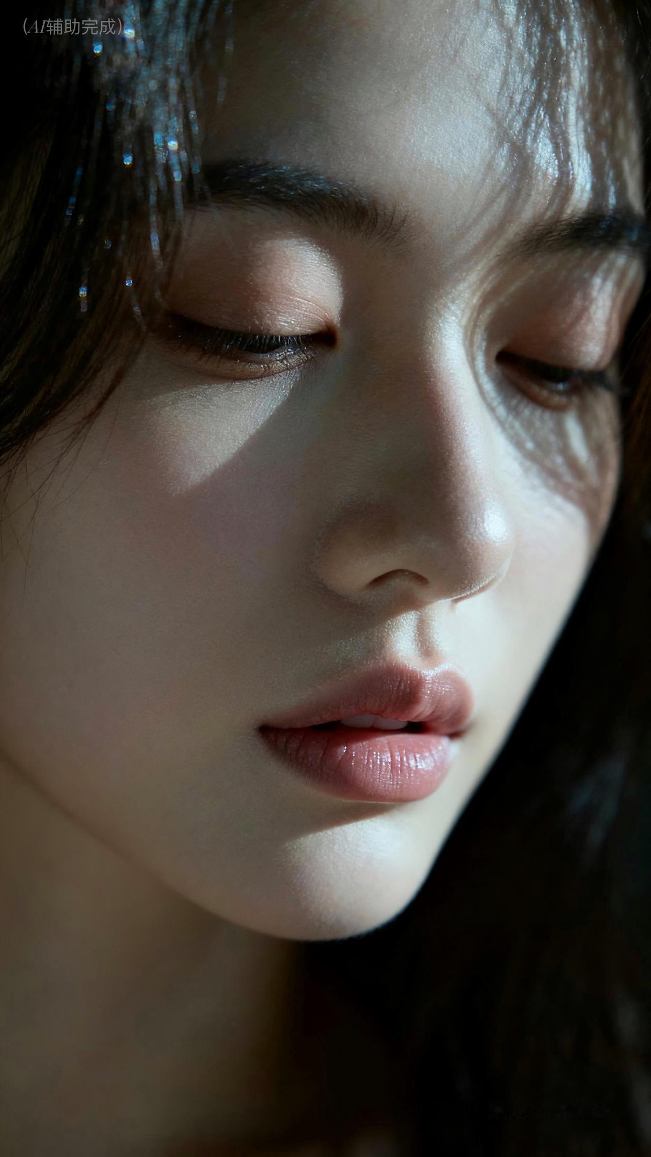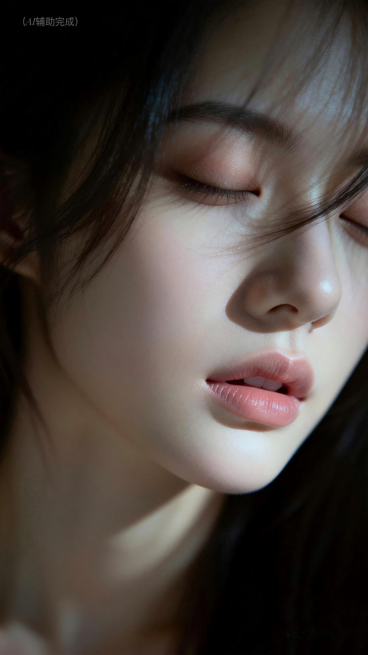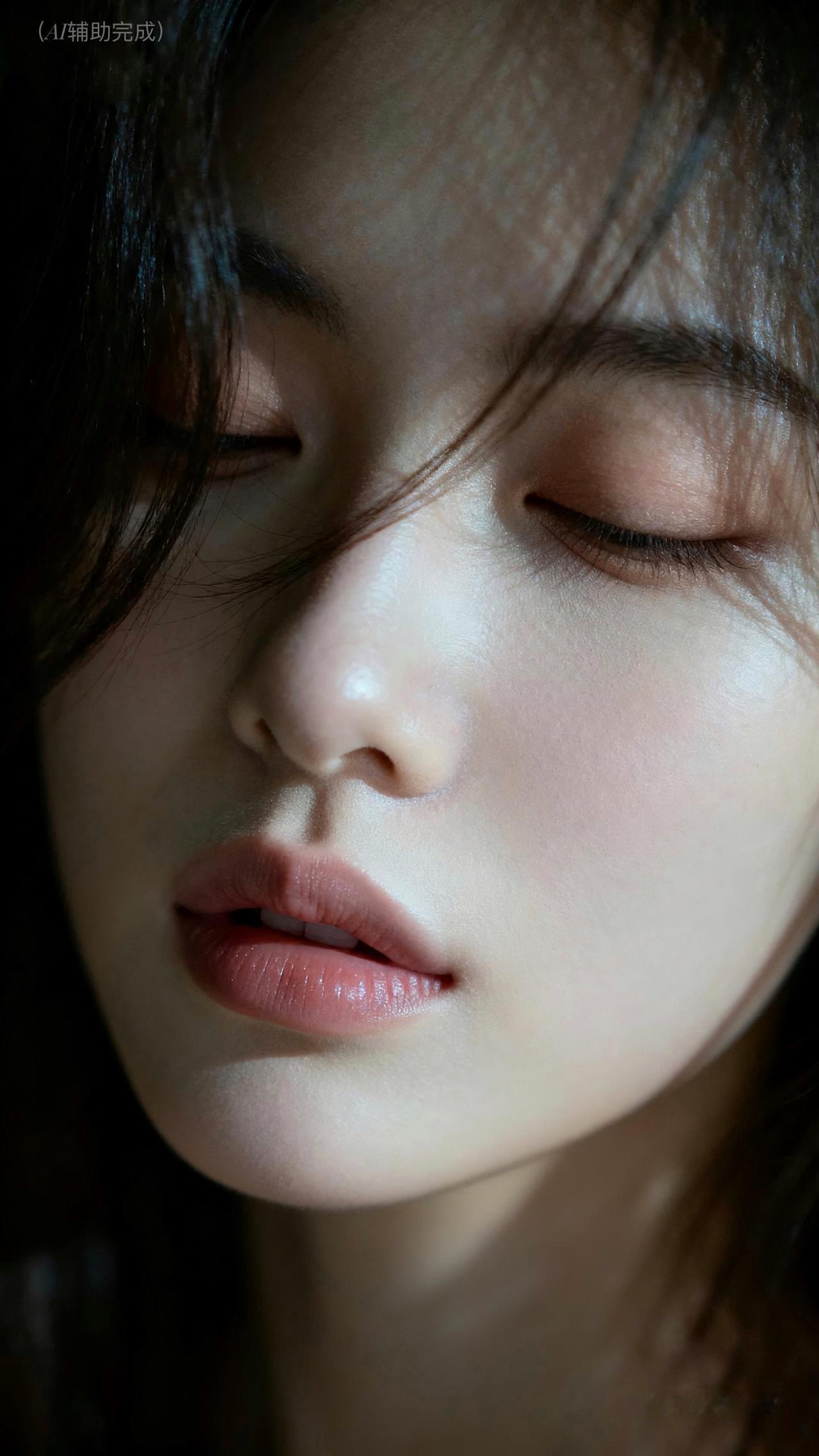 九帧皆藏静谧雅韵。睫若蝶翼垂,鼻梁如峰挺,粉唇微启似含笑。乌发垂肩泛柔光,光影织画境,暗背景衬得容颜更艳。东方温婉在静谧里漫开,这帧美,一眼沦陷。
