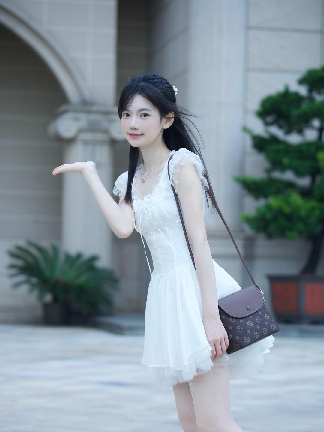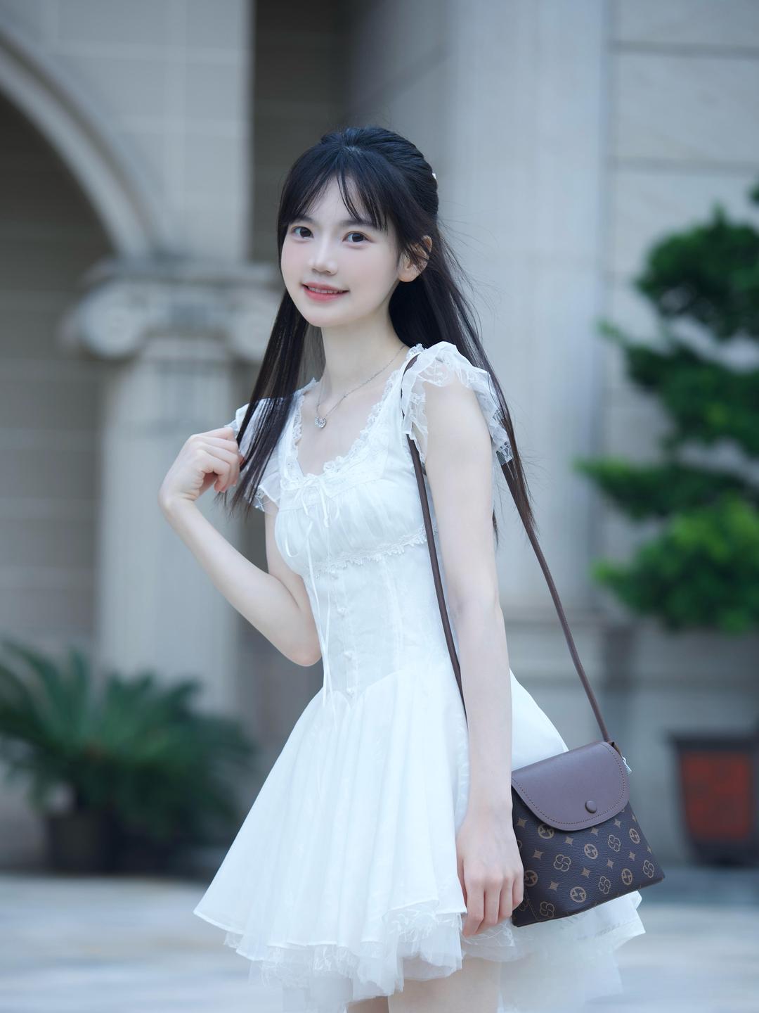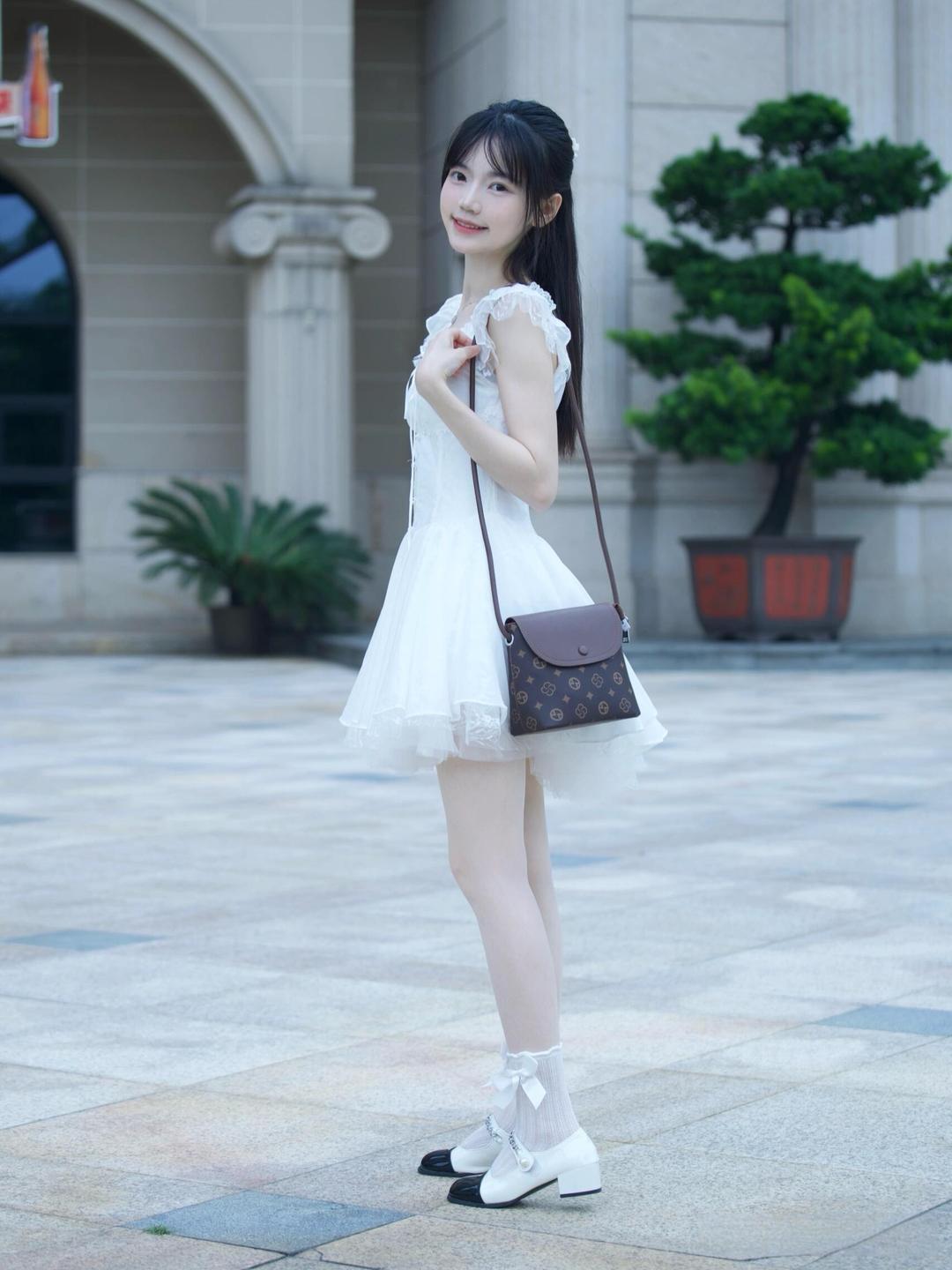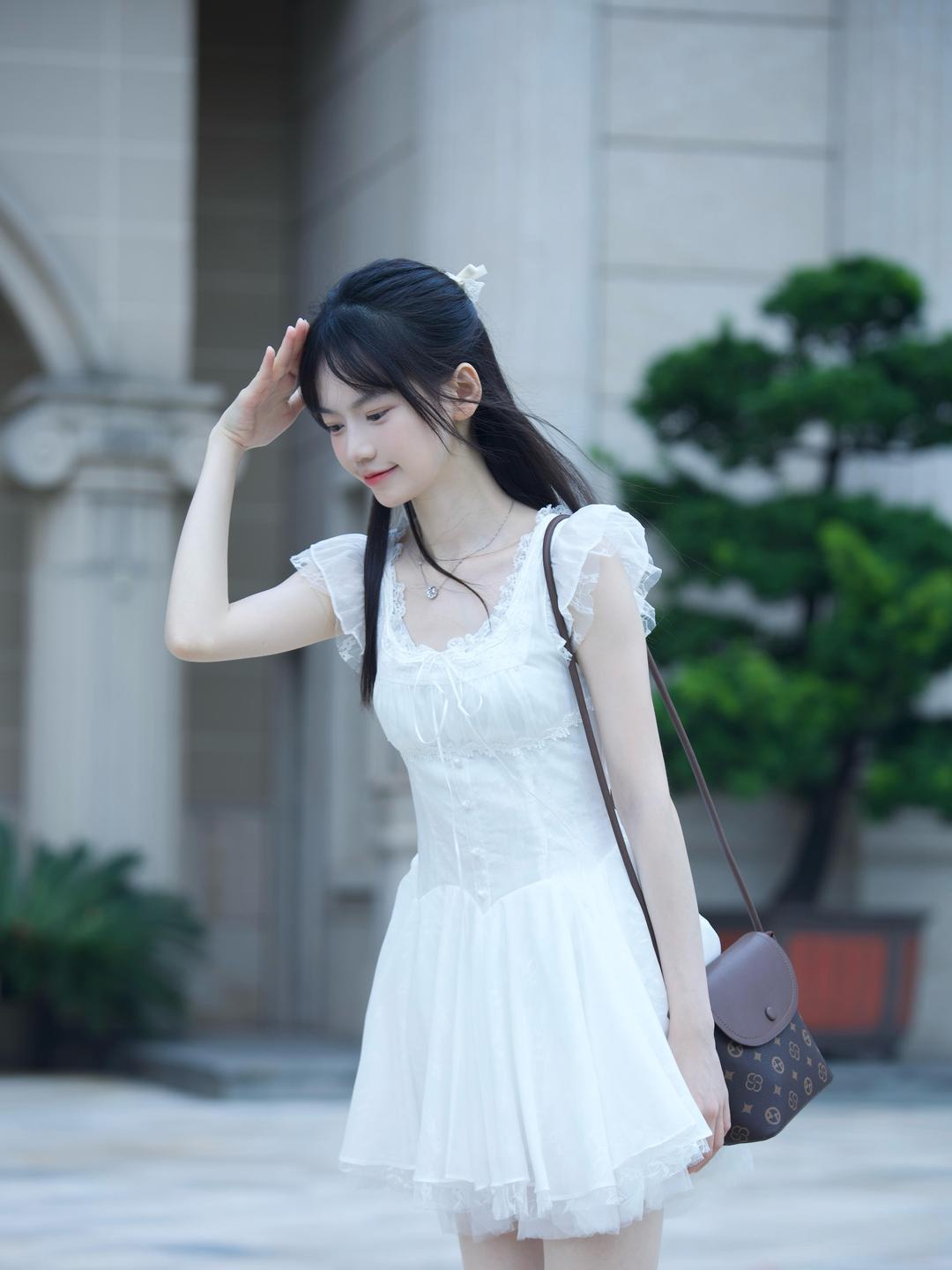 多层纱质裙摆营造出蓬松的公主感,蕾丝与木耳边的细节点缀让白裙更具少女心。