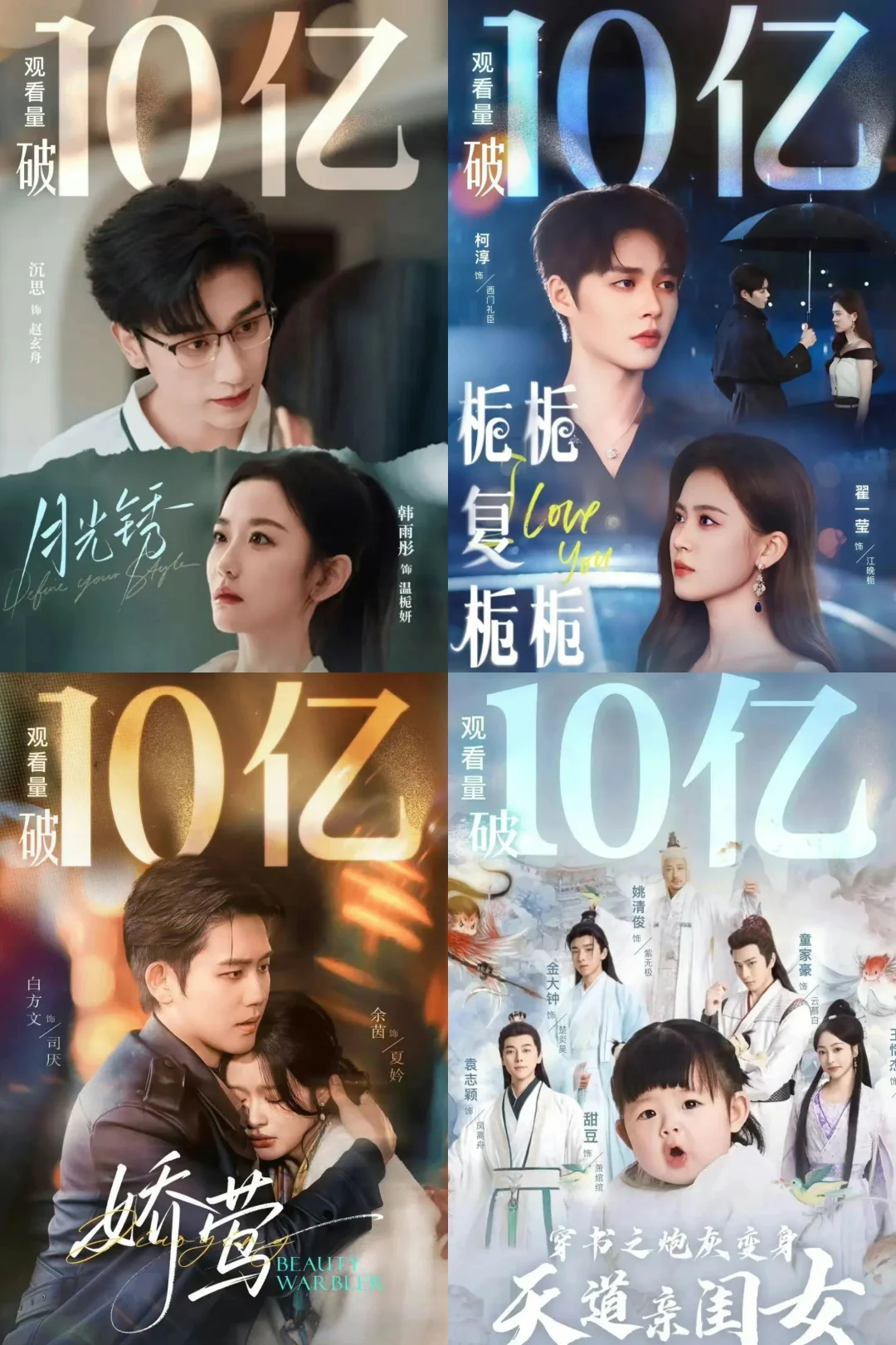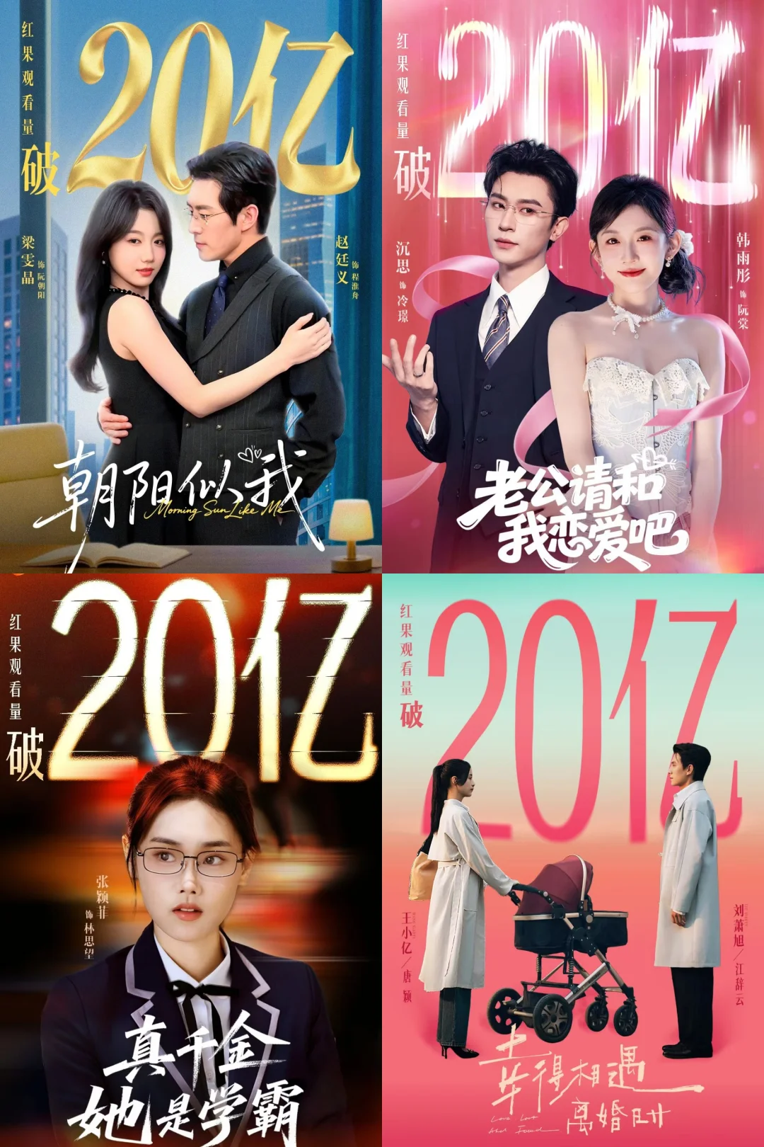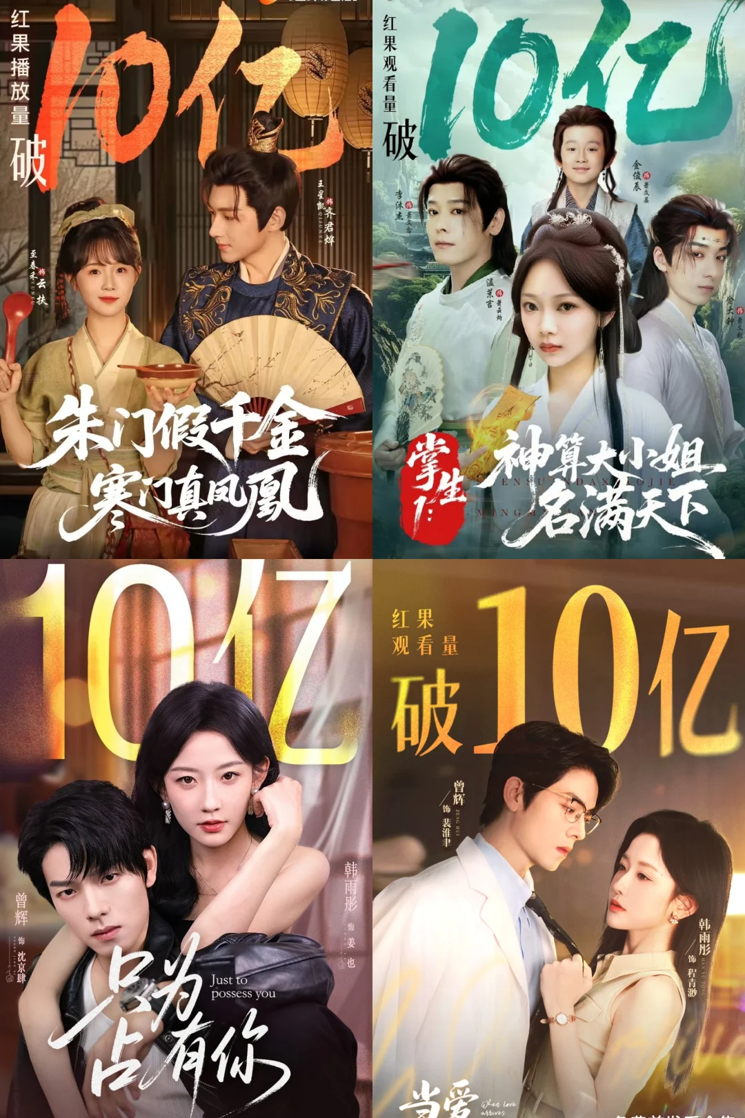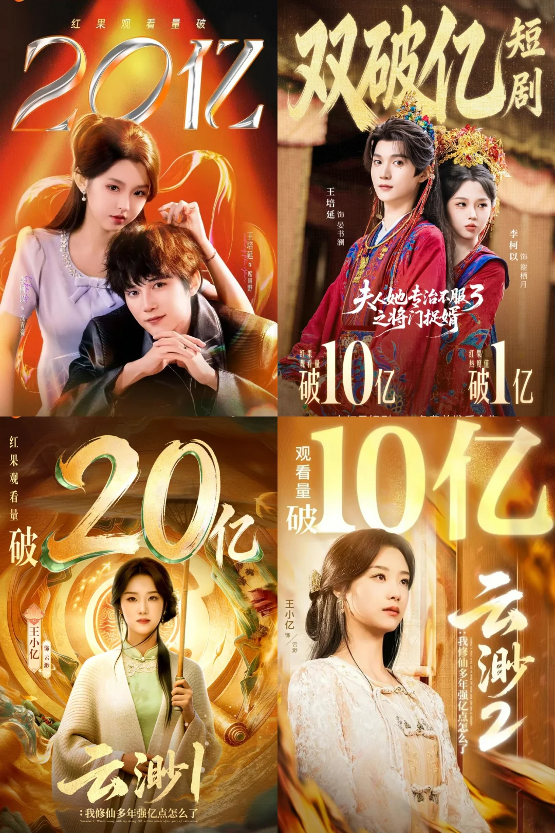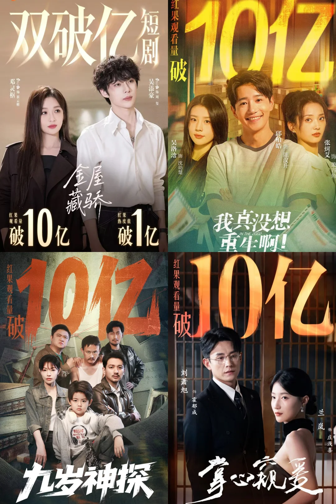 破30亿短剧: ✅好一个乖乖女 柯淳×余茵,香江暗脉少主×隐藏天才画手,人设新颖!逻辑合理!氛围满分! ✅念念有词 刘念×何聪睿 热烈美好甜妹×哑巴霸总,超级治愈 ✅夏日芬德拉 郭宇欣×刘萧旭 先婚后爱烂大街套路,但拍出了氛围感的神 ✅太奶奶驾到,重整家族荣耀3(1&2为20亿) 超赞群像戏,家国情怀和个人魅力都拍得很好! 破20亿短剧: ✅家里家外1-2 短国川渝版《小巷人家》 ✅荒年全村啃树皮,我有系统满仓肉 女总裁穿越古代,立意上乘 ✅云渺1 开创大女主玄幻系列剧先河 ✅傅爷的小青梅又飒又美 赵冠宇&林籽蓉,青梅竹马破镜重圆 ✅穿过荆棘拥抱你 乖乖女类似款 ✅幸得相遇离婚时 爱是托举,而非折翼 ✅老公请和我恋爱吧 从过去穿越未来的失忆老婆治愈老公,救回家庭 ✅真千金她是学霸1 真·事业型大女主 ✅夫人她专治不服2(1&3为10亿) 三生三世女将星制服纨绔丈夫 ✅朝阳似我 引导型男主+牛马共情羡慕型女主 ✅千金谋 落日雨晖CP古装play ✅一品布衣 短国《琅琊榜》,群像小人物高光感人 ✅天下第一纨绔 男频爽剧 破10亿短剧精选: ✅老千 白方文,反转不断 ✅心动请还告诉我 郭宇欣×王凯沐,先婚后爱 ✅双面权臣暗恋我 陈添祥×岳雨婷,白发造型绝了 ✅穿书富家妯娌,我和闺蜜齐上阵 解压小甜饼 ✅野女孩 反拐+校园,彼此的光照亮对方 ✅邱秘书的婚事 韩雨彤×王凯沐,《昭昭于礼》代餐 ✅半熟老公 徐轸轸×王凯沐,“做吗?” ✅侯府夫人要寿终正寝 叶鑫鑫×刘萧旭,贤妻良母爽文 ✅少夫人的乌鸦嘴又显灵了 邓灵枢×马小宇,顾名思义,搞笑解压 ✅掌心窥爱 兰岚×刘萧旭,禁忌之恋极限拉扯 ✅朝阳似我 梁雯晶×赵廷义,牛马见者共情 ✅金屋藏娇 邓灵枢×吴添豪,金毛姐狗 共计破30亿4部,20亿16部,10亿41部。 所有上榜均出自果果发布战报,剧方自己发的不算。 10亿精选比较主观,完整榜单可以看图哈。