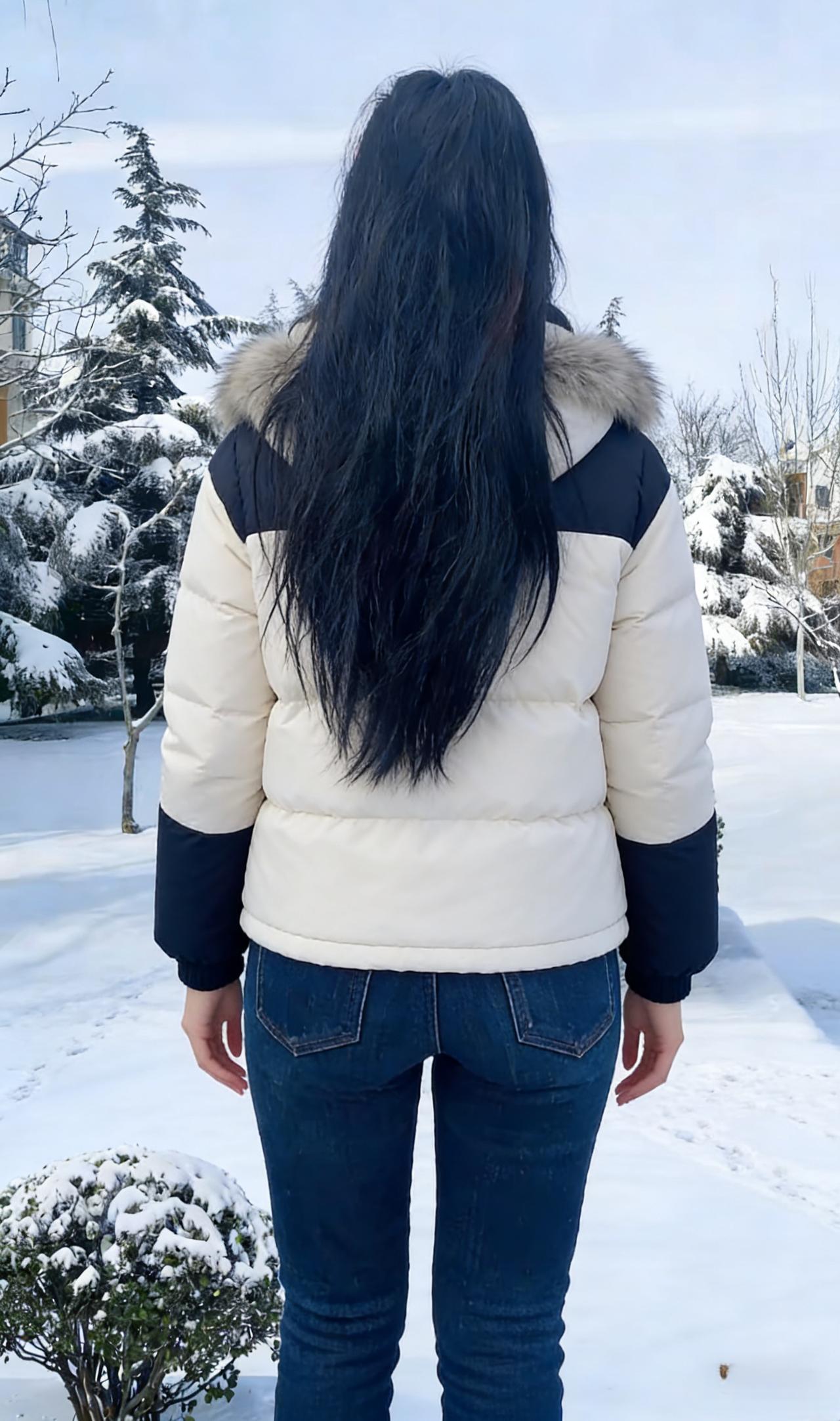 琼英漫野飞,素袂立晴晖。 长发垂如瀑,凝眸盼君归。