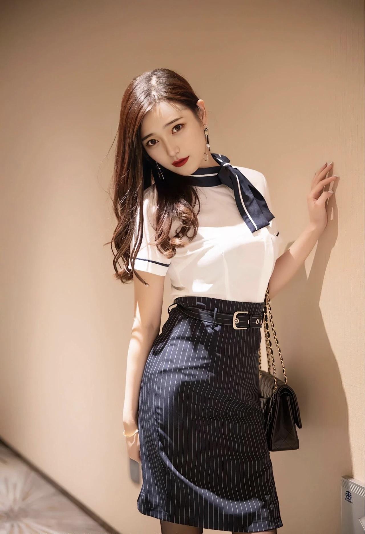 条纹裙+12cm高跟,精致优雅,不是一般人可以驾驭的