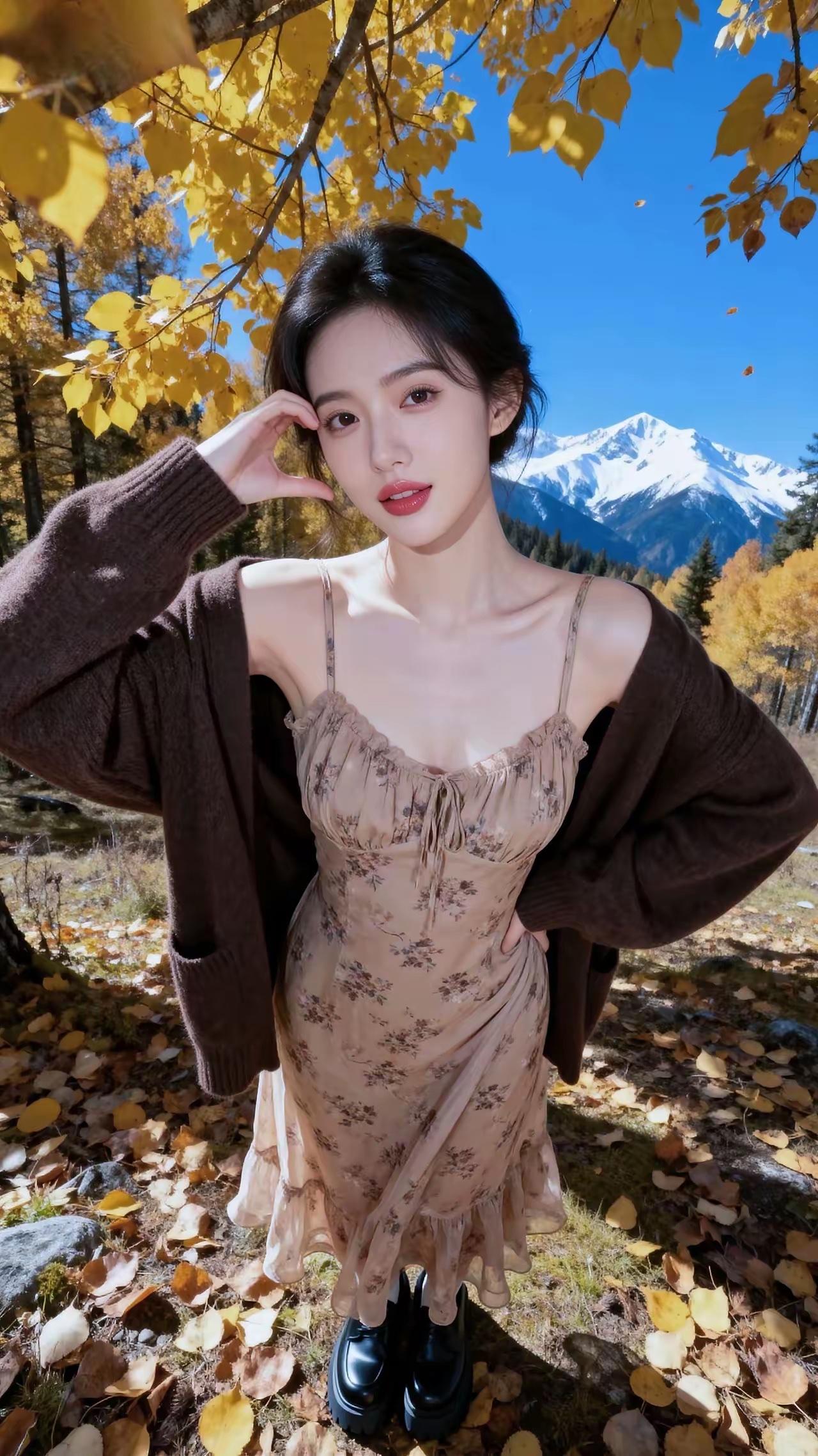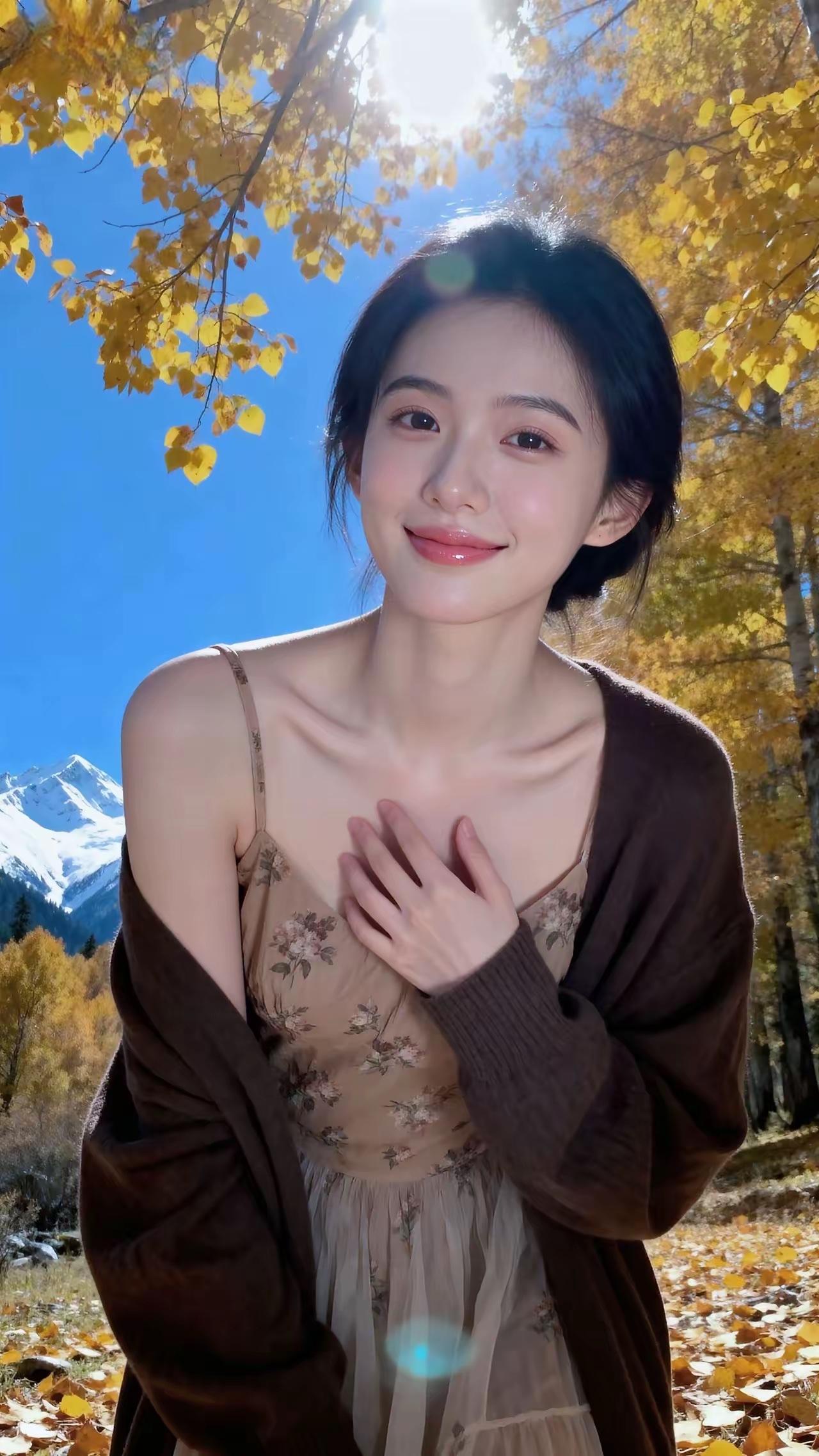 秋日暖阳下的微笑女孩,多彩毛衣与秋叶相映成趣。🍂😊