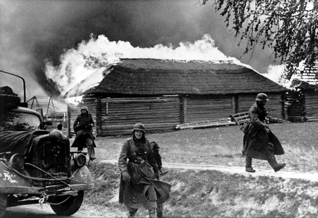 历史镜头下的二战东线战场! 图一:为惩罚资助游击队的当地居民,纳粹德军肆意焚毁