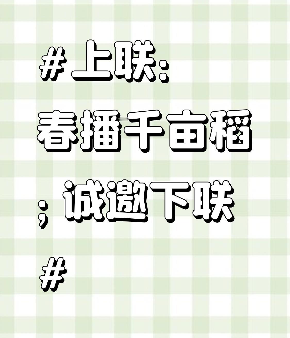 上联:春播千亩稻;诚邀下联