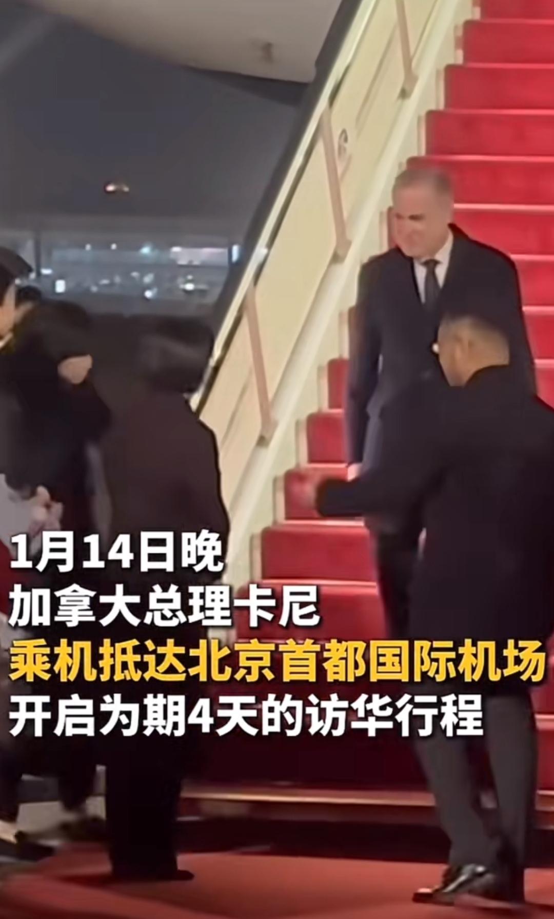 2026年1月14日晚上,北京机场可是迎来了一位贵客——加拿大总理卡尼到了! 专机落地,舱门打开,卡尼总理一个人不紧不慢地从铺着红毯的舷梯上走下来,大冬天的晚上,他就穿了身西装加大衣,系着领带,看着挺精神。咱们这边的工作人员早就铺好红毯等着了,仪式简单又周到。 说起来,这可是加拿大总理时隔好些年头一回来正式访问,意义不一般。听说他这次要待上好几天,不光自己来了,还带了好几位管外交、管贸易的部长,阵仗不小,看来是打算好好聊聊合作。 这大晚上独自走下飞机的画面,让人感觉这位总理还挺务实、挺干脆的。两国关系搞好,对咱们老百姓来说肯定是好事,往后的生意、交流估计能更方便。