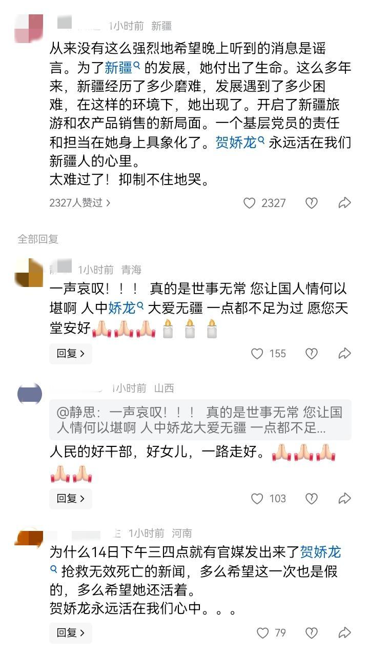 新疆,那个说要退休的贺局长, 再也等不到退休的日子了, 刚在元旦说“已经圆梦,过几年就退休”的贺娇龙局长,永远离开了我们。 2025年12月31日,还有网友建议她调任农业农村厅或文旅厅副厅长,她笑着回复“感恩,现在的单位温暖安心,过几年就退休了”,谁能想到,仅仅才过了十几天,她就因为坠马受了重伤,现在抢救无效,离开了这个世界。 她是全网第一个,现象级的体制内文旅宣传官,她那身披红斗篷,在雪地里策马奔腾的画面,让无数人记住了新疆,向往着伊犁。 走红后的她从没想过利用名气来谋取私利,反而是跑遍了乡村和牧场,把老乡们的滞销农产品搬上直播间,累计开展500余场助农直播,带动超6亿元销售额,推动400余家涉农企业走上电商之路,实打实帮老乡增收致富,很多新疆的朋友们都记得这位实打实干事的好干部。 大家都以为贺局长能安稳等到退休,享受属于自己的时光,可这场意外,却让一切戛然而止。 还有网友评论让我看的直掉眼泪:从来没有这么强烈地希望晚上听到的消息是谣言。为了新疆的发展,她付出了生命。这么多年来,新疆经历了多少磨难,发展遇到了多少困难,在这样的环境下,她出现了。开启了新疆旅游和农产品销售的新局面。一个基层党员的责任和担当在她身上具象化了。贺娇龙永远活在我们新疆人的心里。太难过了!抑制不住地哭。 贺局长,一路走好,你为新疆、为老乡做的一切,我们永远记得。