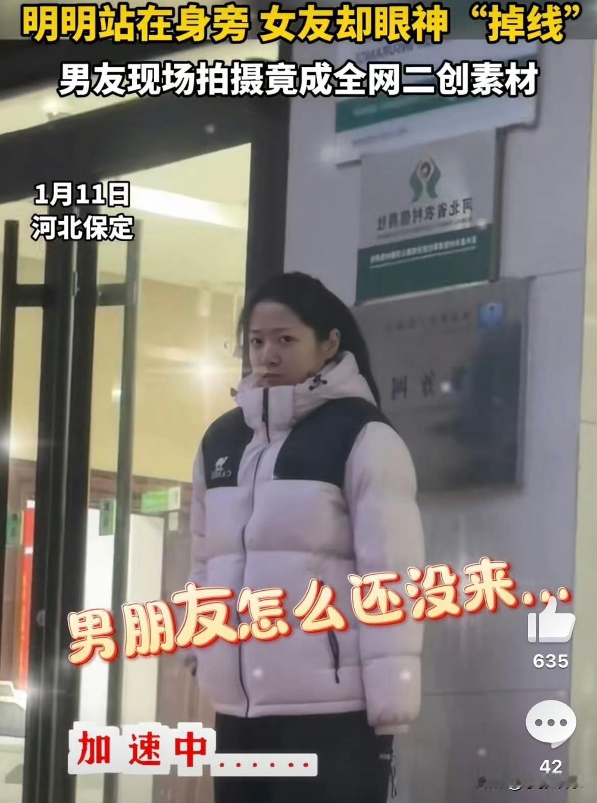 “果然女孩子是世界上最可爱的生物。” 一条拍摄于河北保定的短视频意外走红网络。镜头里,一位近视的女生正专注地“站岗”等男友,但连男友到身边了都没有发现。不是不想认。而是眼前的世界实在模糊。 这让人哭笑不得的一幕,瞬间戳中了无数“近视党”的隐秘日常:不是高冷,是看不清;不是记性差,是摘下眼镜后真的“六亲不认”。 视频的爆火,引发了全网二创热潮。对此,拍摄者坦言始料未及,但表示网友们的善意玩梗充满了趣味与共鸣。最有趣的是,视频中的女友本人比谁都开心,笑着接纳了这场因模糊视线而引发的全网欢乐。 原来,这份让人会心一笑的幽默背后,是一个视力模糊的群体在日常生活中,努力辨认世界的、真切而不易的缩影。