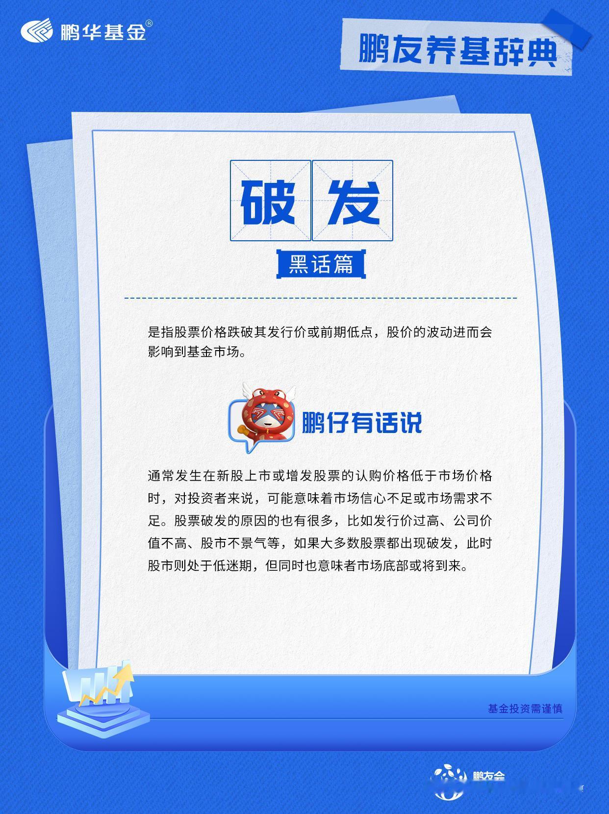 鹏华基金投资者教育基地想必鹏友们都理解“破碎、破获、破绽”等词汇的意思,那在A股市场中,大家是否会时不时听到或看到“破发”的字眼,“破发”具体又是指什么?本期鹏友养基辞典带大家了解下~基金理财