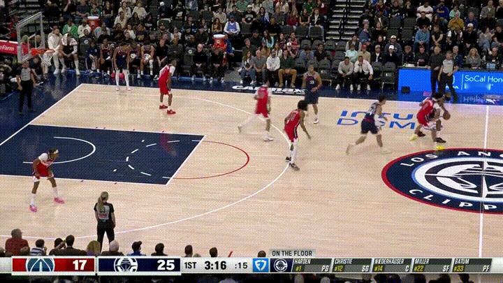 快船小将尼德豪泽真是太让人欣喜若狂了!在今天进行的快船和奇才的比赛中,当时比赛进行到了第一节的三分多钟,尼德豪泽在和老大哥哈登做了一个挡拆配合后非常聪明的顺下,然后接哈登的妙传完成了一记气势如虹的双手空接暴扣,帮助球队将领先优势扩大到了两位数。 坦白说,运动能力出色的尼德豪泽是一位非常擅长打挡拆的中锋,尼德豪泽和哈登的挡拆配合很有可能会成为快船的重要进攻武器。