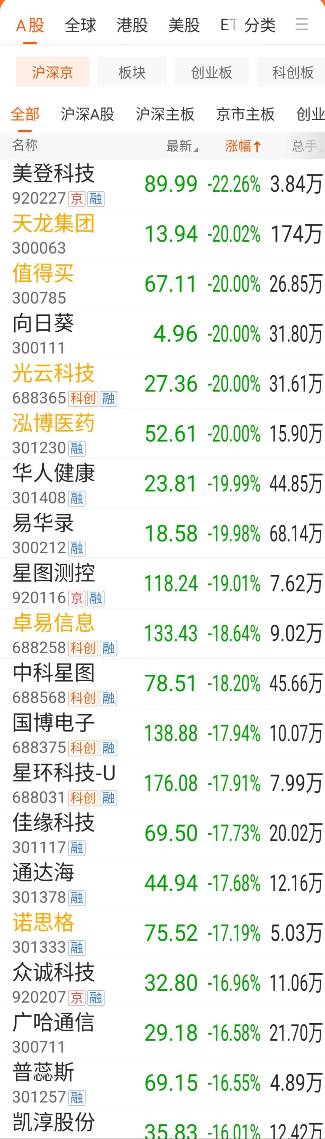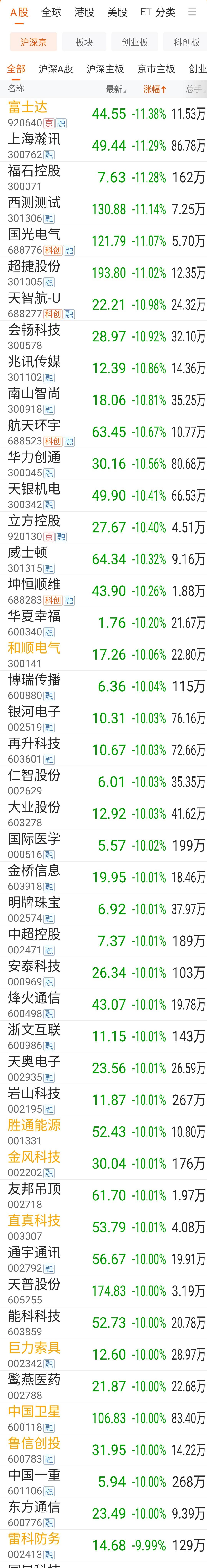 AI也是一日天堂,一日地狱,面面面,满屏大面。 今天的面真的是吃饱管够啊…… 昨天上午都还在天堂KTV豪迈享乐中,中午降温消息一出来,下午是稍有回落,2点之后,还有几个继续上板回封的,看着还是很强,昨天强度也是第一。 没想到,一夜之后,今天就是集体ICU了。 集合竞价都是大幅低开,开盘后连板龙一直真科技直接秒跌停,20CM的易中天们,除了一个停牌的,其他也都是快速向地板砸去。 这样一天天堂,一日地狱的疯狂,真的是搞得人头晕眼花的。 看来,上面的降温意图是完全实现了,有时候不信邪是不行滴。 默哀一小时,下午接着战斗……