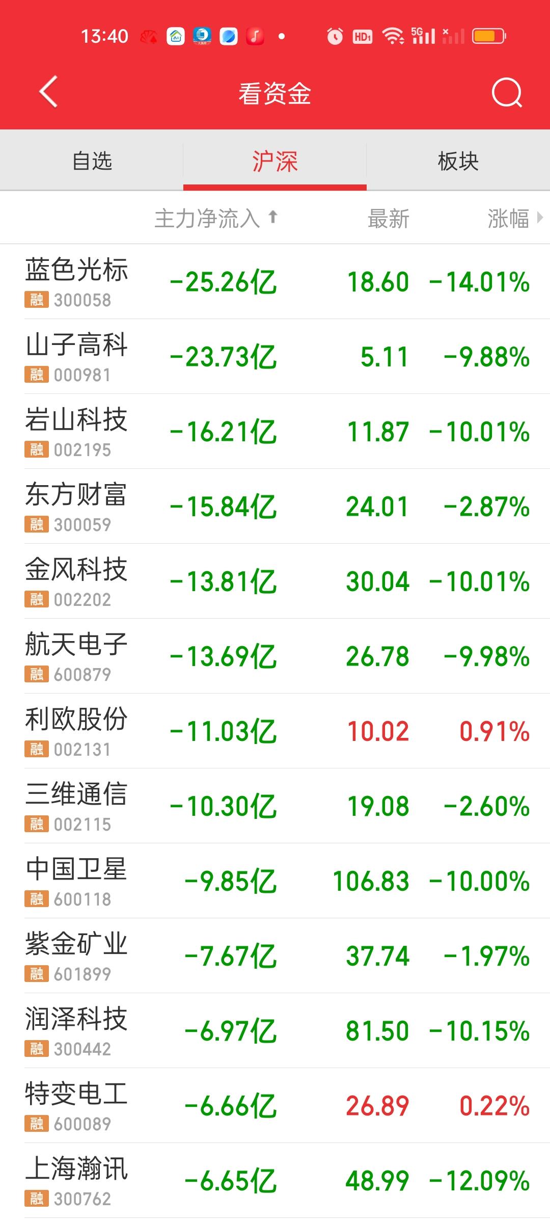 大盘这个地方很奇怪,完全没有成交量了。成交量缩量了8700亿,大盘资金净流出894亿,涨跌停比44:63,有63家个股跌停,也算是创了短期记录了。主力资金净流入方面,只有沃尔核材和立讯精密净流入资金超过了10亿,有8只个股净流出资金超过10亿。