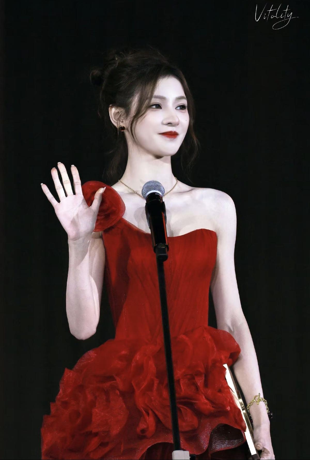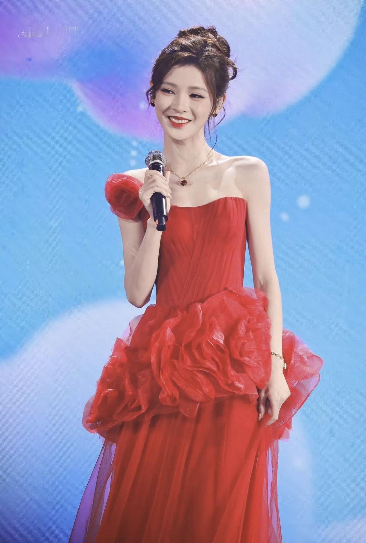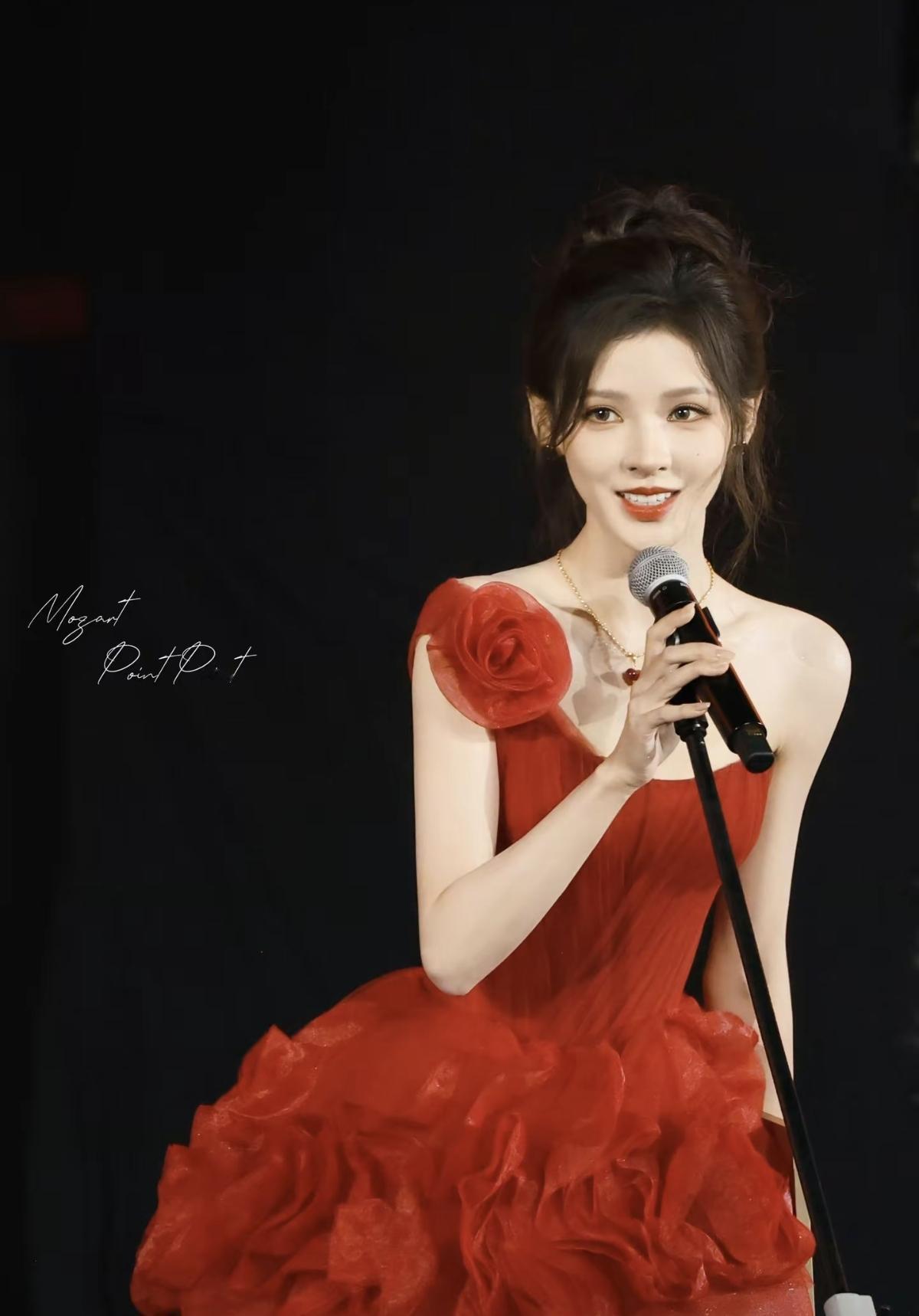 张予曦这一身红裙造型堪称“明艳感天花板”,抹胸设计勾勒精致肩颈线,立体花朵与层叠纱裙的组合华丽又浪漫,完美适配舞台氛围[比心]红裙似燃烧的火焰,张予曦红唇微扬,手持话筒静立的模样,自带明艳夺目的舞台张力[加一][玫瑰]娱乐明星