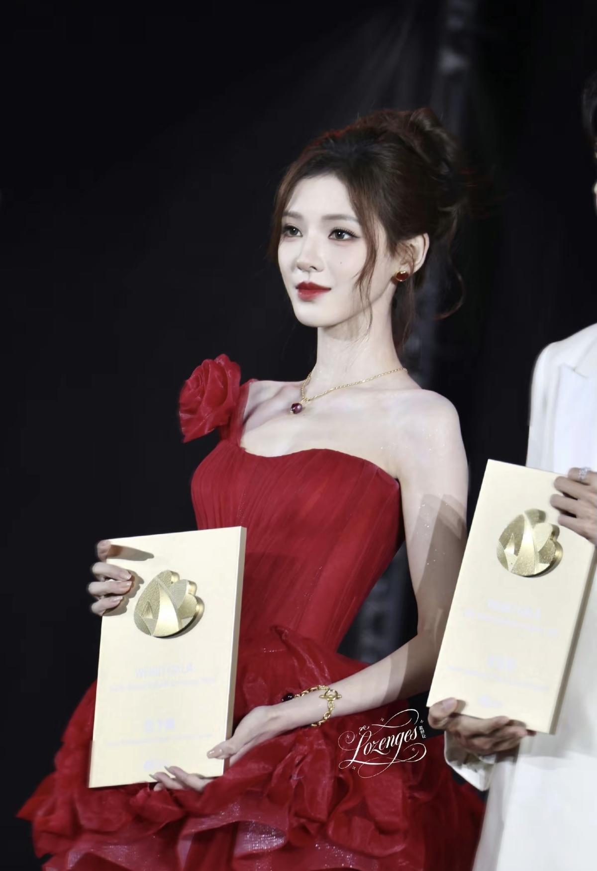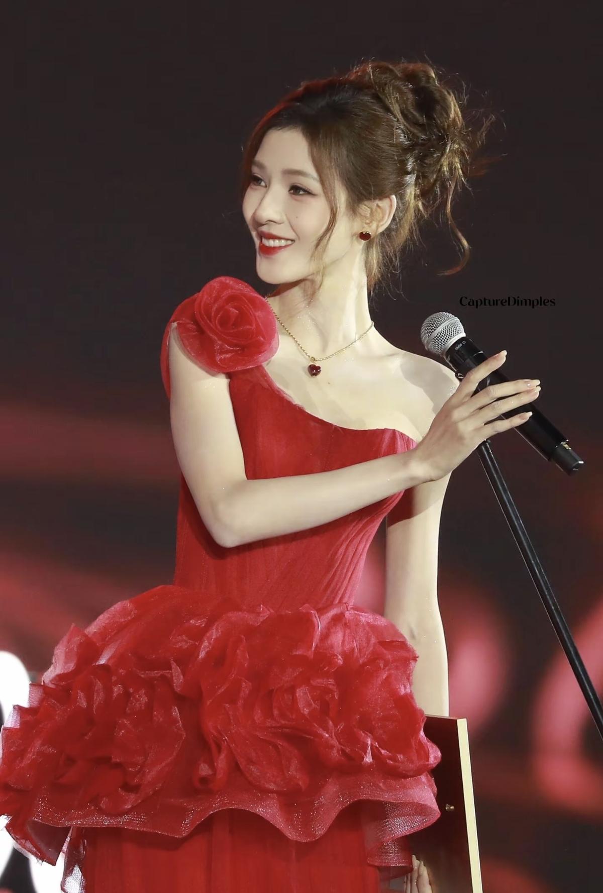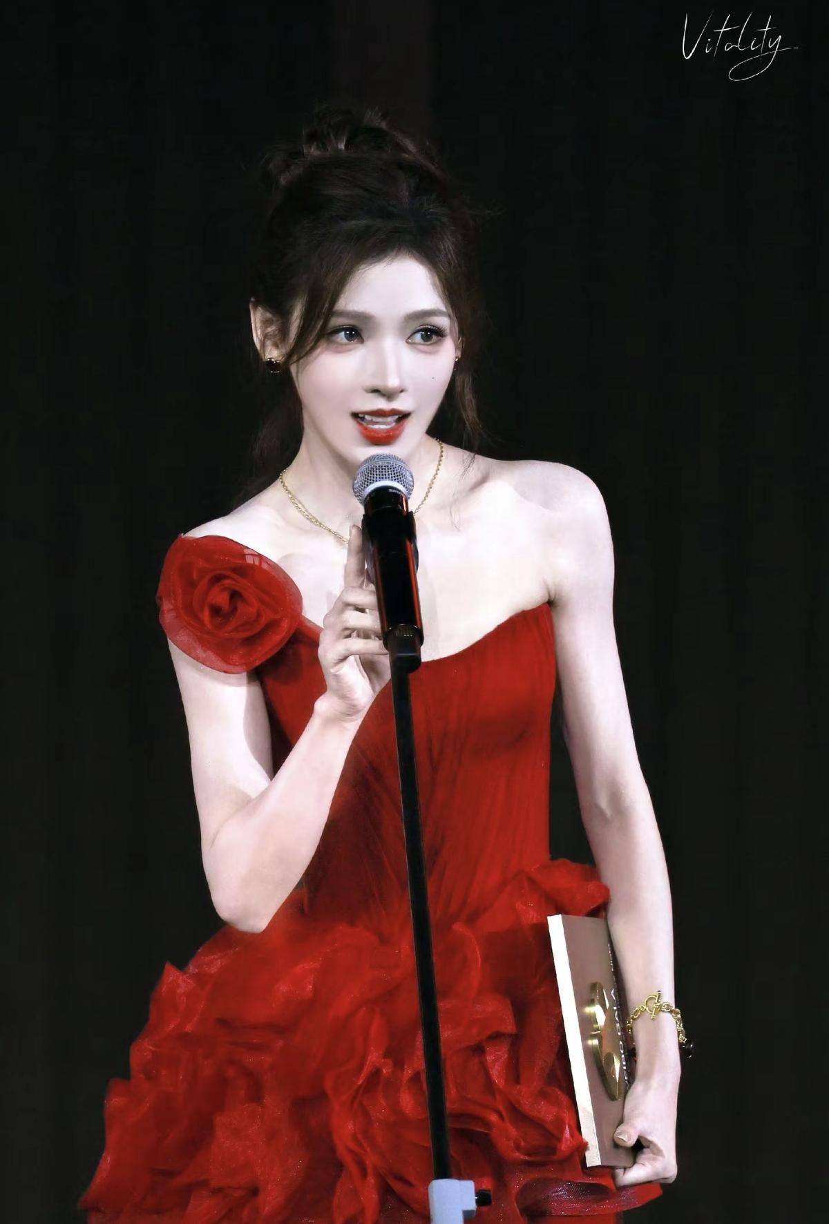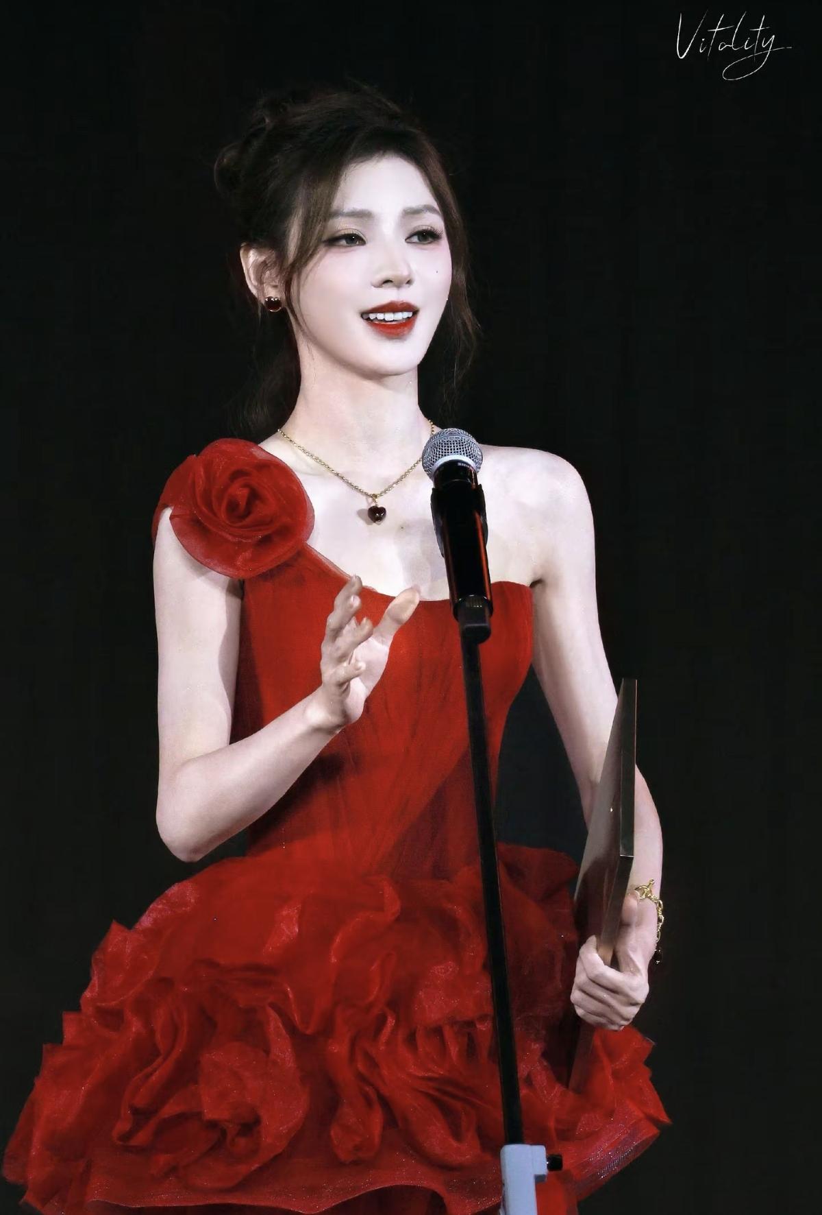 张予曦这一身红裙造型堪称“明艳感天花板”,抹胸设计勾勒精致肩颈线,立体花朵与层叠纱裙的组合华丽又浪漫,完美适配舞台氛围[比心]红裙似燃烧的火焰,张予曦红唇微扬,手持话筒静立的模样,自带明艳夺目的舞台张力[加一][玫瑰]娱乐明星