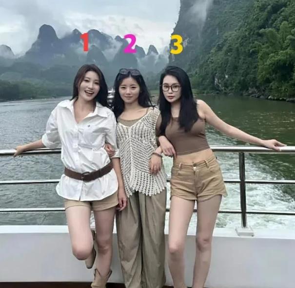 我敢打赌,90%的男人都是选戴眼镜那个,不接受反驳! 说白了,男人的审美里藏着的那点小心思,在这张游船合照里被扒得明明白白。 其实站在漓江游船的甲板上,三个姑娘各有各的亮眼之处。 最左边的姑娘一身白衬衫配短裤,利落清爽,笑起来露出结拜的牙齿,像夏天刚从冰柜里拿出来的橘子汽水,冒着甜滋滋的气泡,浑身都透着没心没肺的活力。 中间的姑娘裹着件镂空针织衫,垂着眉眼抿嘴笑,安静得像江边的雾,自带一种温柔的钝感,让人忍不住想凑过去问一句“你在想什么”。 可偏偏是最右边那个戴眼镜的姑娘,把这股子松弛感给截胡了,她没笑只是微微歪头看着镜头,黑框眼镜衬得眼神又亮又野,像藏着点没说出口的调侃,吊带衫和热裤把身段绷得恰到好处,那股“我知道你在看我”的坦荡劲儿,直接撞进了男人的审美盲区。 其实现在会有人喊着“小孩子才做选择,成年人全部都要”,可真到了动心思的时候,身体诚实得很。 据说90%的男人在这张照片里都会直接锁定戴眼镜的姑娘,不是因为另外两个不够好,而是这种“带点距离感的性感”太戳人。 眼镜这东西很妙,它给漂亮脸蛋加了层滤镜,把直白的美变得耐人寻味,像拆盲盒似的,让人忍不住想看看镜片后面藏着的是俏皮还是狡黠。 你看她往那一站,没刻意卖萌也没端着架子,就凭着那副眼镜和漫不经心的站姿,把“不好惹但很好看”的信号拉满了。 不过也难怪有人说,百分之九十的男人容易被女人骗,毕竟比起一眼望到底的甜,这种带点神秘感的吸引力实在太有迷惑性。 眼镜一戴,既保留了女性的柔媚,又多了几分智性的魅力,让人下意识觉得这姑娘“有脑子又有趣”,心甘情愿跟着她的节奏走。 其实哪有什么骗不骗,不过是男人自己掉进了“反差感”的陷阱里——既想要美女的颜值,又想要学霸的脑子,戴眼镜的姑娘刚好把这两样揉在了一起,让他们心甘情愿地掏出真心。 当然了,这只是我个人看法,你要是觉得另外两个姑娘更对味,欢迎在评论区跟我掰扯掰扯。