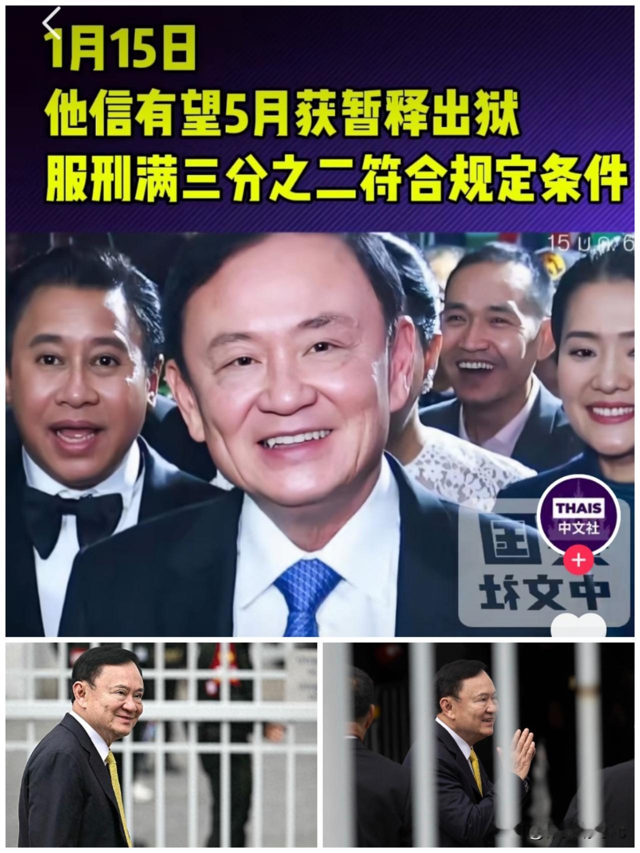 重磅消息 泰国惩教署最新消息确认,泰国前总理他信有望在今年5月份获得暂释,离开监狱。当地时间1月15日,泰国惩教署称由于他信没有赶上每年特定的囚犯等级评定程序,但是他信符合一般囚犯暂时条件,就是被判刑1年刑期服刑者有望服刑三分之二,也就是服刑8个月后,没有其他案件的话,他信有望在5月份进入暂释审议阶段,他信去年9月份入狱服刑,目前已经服刑4个多月,而5月份正好服刑8个多月,所以不出意外的话,他信有望在2026年5月份获得暂释条件,依法离开监狱开始暂释阶段。