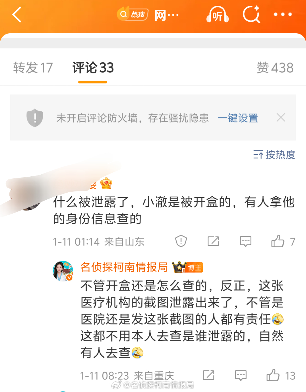 卫健局将调查疑小澈住院记录曝光我就说自然有人会去查吧!泄露医疗机构患者隐私就是违