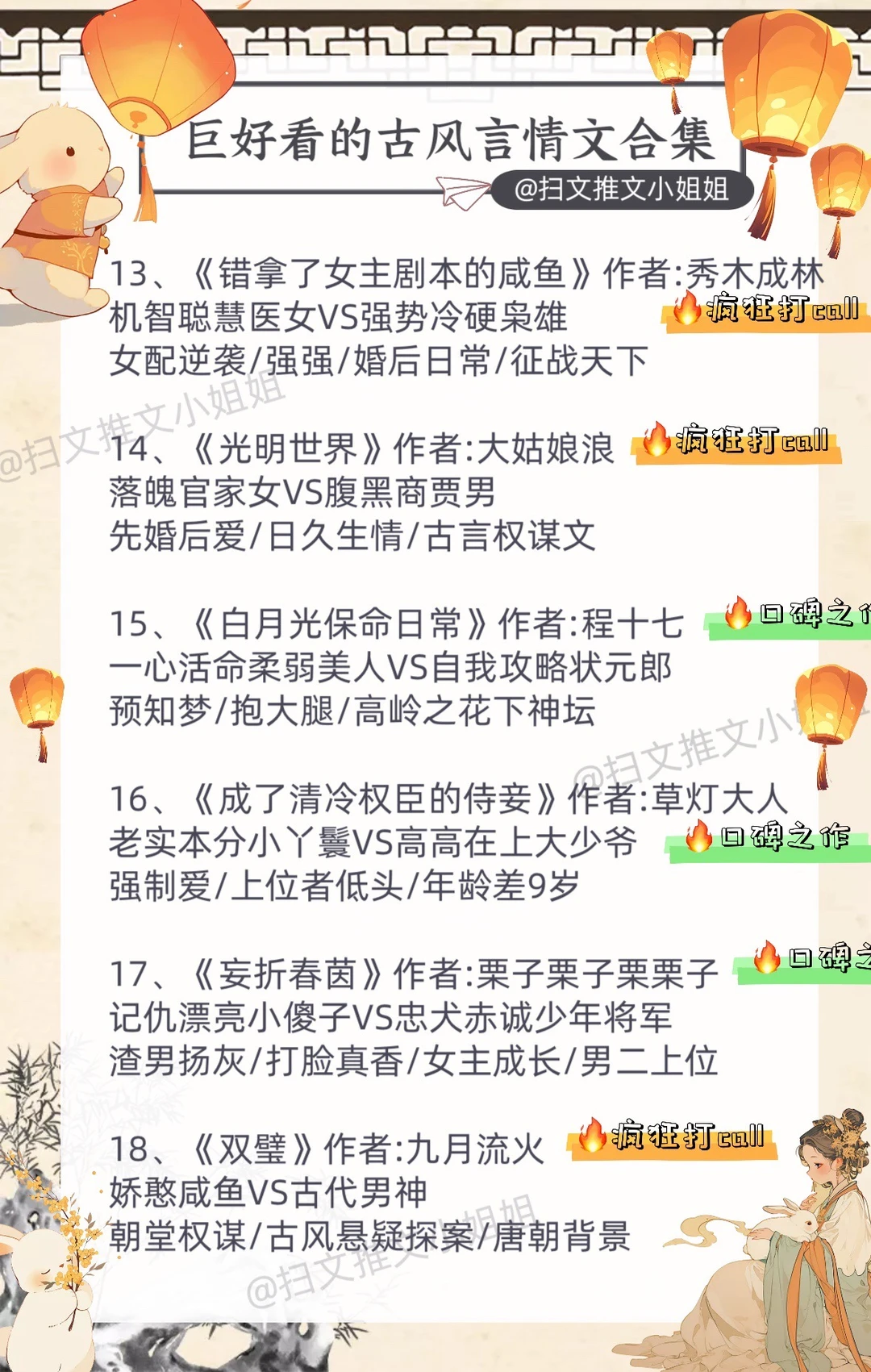 这期古言脑袋一定要收藏啊,都是高口碑作者的经典之作,先婚后爱,强取豪夺,细水长流,少男少女的感情,甜度爆表也太好磕了!我超爱!各类型都有了,或许你们也会喜欢呢!