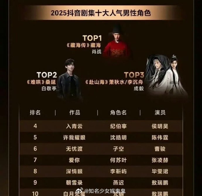 2025🫘🎶年度剧集报告—十大人气男性角色排名
