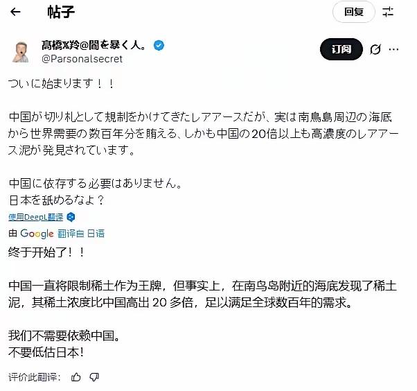 高市亲自指挥试采稀土,日本网友提前开香槟:中国要哭了 就在近日,日本前总务大臣高市早苗亲临现场指挥稀土试采工作,这一画面被日本媒体高调报道后,迅速引发日本网友狂欢。有人甚至提前“开香槟”,兴奋地表示:“中国这回要哭了!” 这场隔着网络的庆祝,乍看像是日本在关键资源领域取得了什么重大突破。但当我们掀开这层喜庆的面纱,看到的却是另一番景象。 稀土,这个被称为“工业维生素”的战略资源,确实牵动着全球制造业的神经。从智能手机、电动汽车到战斗机、导弹制导系统,稀土元素无处不在。中国长期以来供应着全球90%以上的稀土,这种主导地位让不少国家感到不安。 日本网友的兴奋情绪可以理解——谁不想减少对单一国家的资源依赖呢?但现实往往比情绪复杂得多。 首先,稀土开采不是挖土豆那么简单。它涉及复杂的提取技术、环保处理和产业链整合。中国之所以能主导全球稀土市场,不仅仅是靠储量优势,更是经过数十年技术积累和产业链建设的结果。从采矿、分离到精深加工,中国已经形成了完整的产业体系。 反观日本,虽然海底稀土储量可能可观,但深海开采技术难度大、成本高,且面临严峻的环境挑战。即便能够成功开采,从原料到可用稀土产品还有很长一段路要走。这就像有人发现了一座金矿,却没有冶炼黄金的技术和设备。 更值得深思的是,在全球绿色能源转型和科技竞争白热化的今天,稀土的战略价值早已超越了简单的买卖关系。它已经成为大国博弈中的一张关键牌。中国近年来加强稀土开采和出口管理,不是单纯的经济行为,而是基于国家长远发展战略的考量。 日本网友的“开香槟”举动,恰恰暴露了一种资源焦虑心态。这种心态不仅存在于日本,也普遍存在于许多工业化国家。它反映的是全球化背景下,各国对供应链安全的深度担忧。 但问题在于,真正的资源安全不是靠一场媒体狂欢或个别矿产的成功试采就能实现的。它需要的是长期的技术投入、国际合作和可持续的产业发展战略。 中国在稀土领域的主导地位,不是天上掉下来的,而是几代科技工作者和产业工人艰苦努力的结果。这种优势不会因为其他国家发现新矿源就轻易丧失。 事实上,面对全球稀土竞争新格局,中国早已开始行动:加强稀土技术研发,推动产业升级,从简单的资源出口转向高附加值产品制造,同时积极参与全球资源治理。 日本网友的“开香槟”庆祝,更像是一面镜子,映照出各国在关键资源领域的焦虑与竞争。但在这面镜子里,我们更应该看到的,不是谁哭谁笑的短暂情绪,而是国家间科技实力和产业深度的长远较量。 稀土之争,本质上是科技之争、产业之争、未来之争。这场竞争没有简单的赢家输家,只有那些能够持续创新、掌握核心技术、构建完整产业链的国家,才能笑到最后。 对于中国而言,外界的每一次“开香槟”,都是一次提醒:战略资源的优势需要不断巩固,科技创新永无止境。而对于普通网友,或许更需要的是理性看待资源竞争,相信国家战略,而非被碎片化的情绪所左右。 毕竟,真正的竞争力,从来不在于别人是否“开香槟”,而在于自己手中握有什么样的牌,以及如何打好这副牌。在稀土这场长远竞赛中,中国早已超越简单的资源输出,正朝着更高价值链迈进——这才是日本网友的香槟庆祝背后,真正值得关注的深层故事。