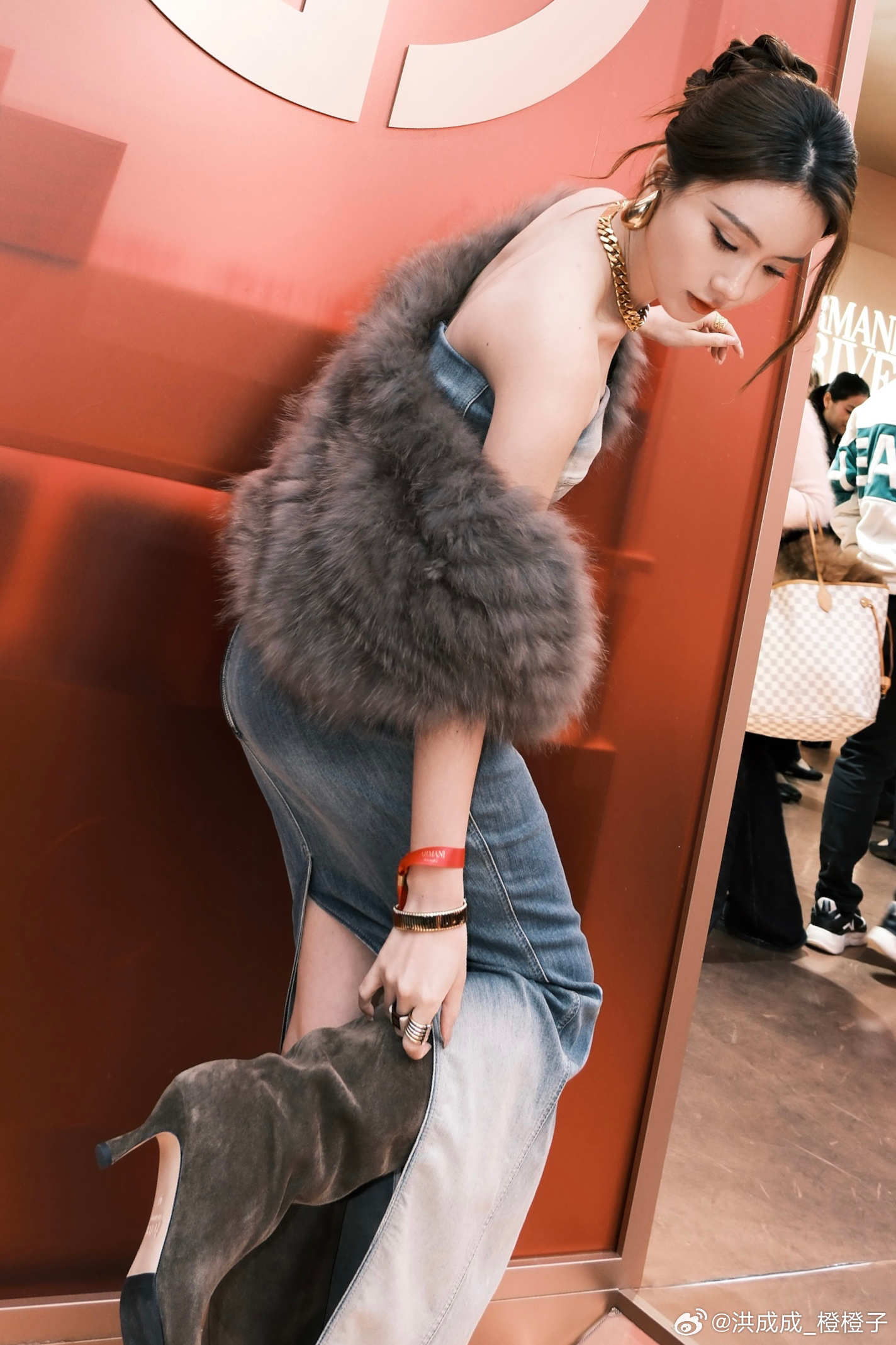 傅菁魅力舞台,吊带牛仔,酷飒有型。傅菁