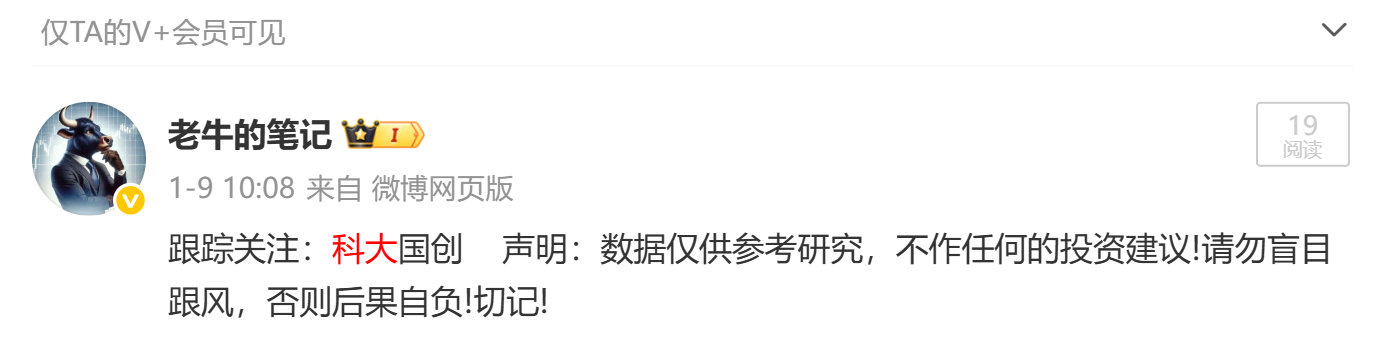 1月9日跟踪关注的 科大国创 又迎来了 20cm!认可老牛实力的朋友,来一波