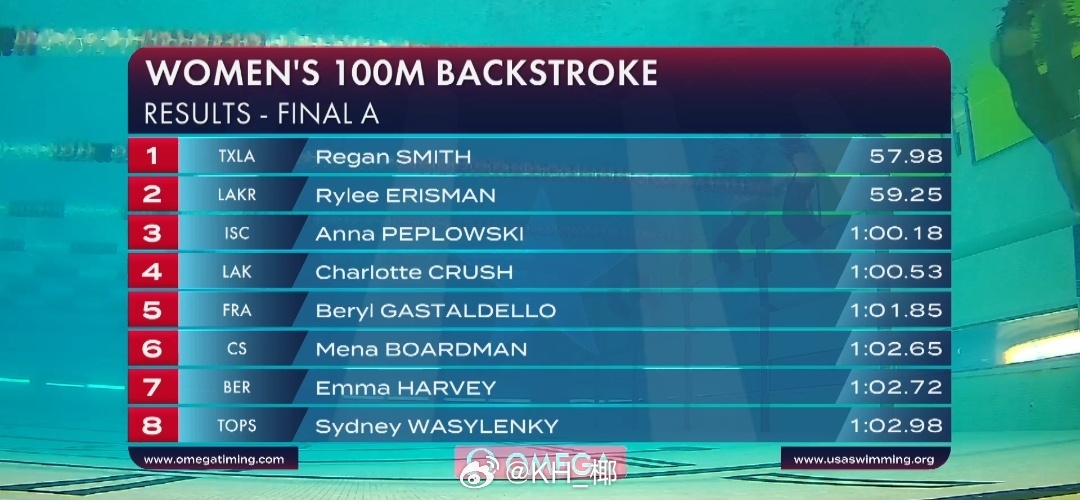 美国游泳系列赛奥斯丁站女100仰决赛小刷子57.98新年第一枪水灵灵游进58