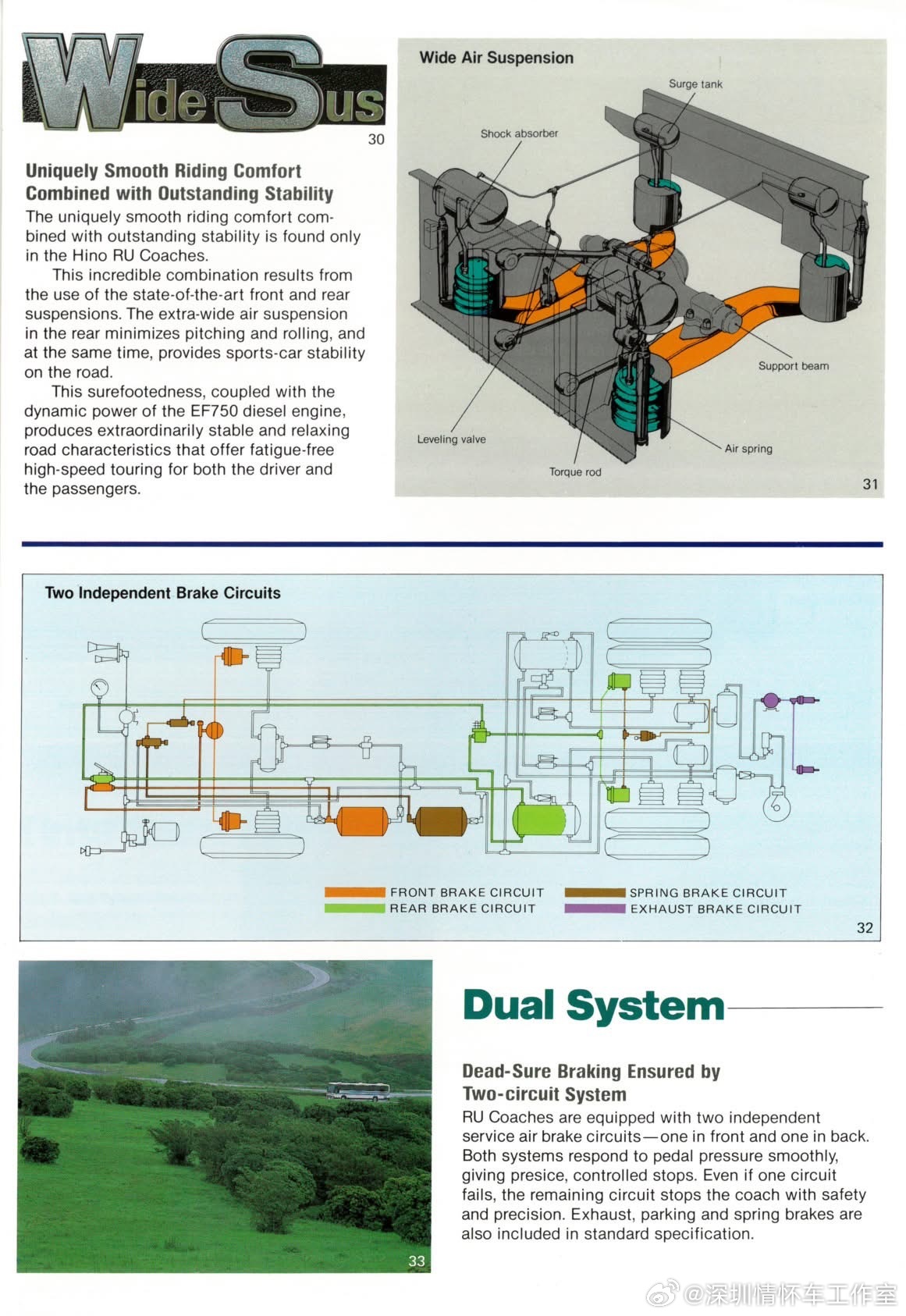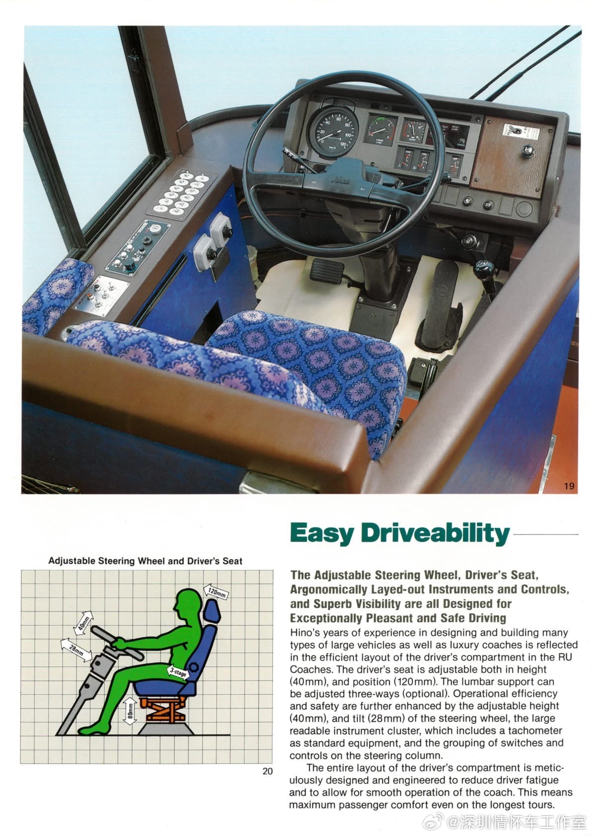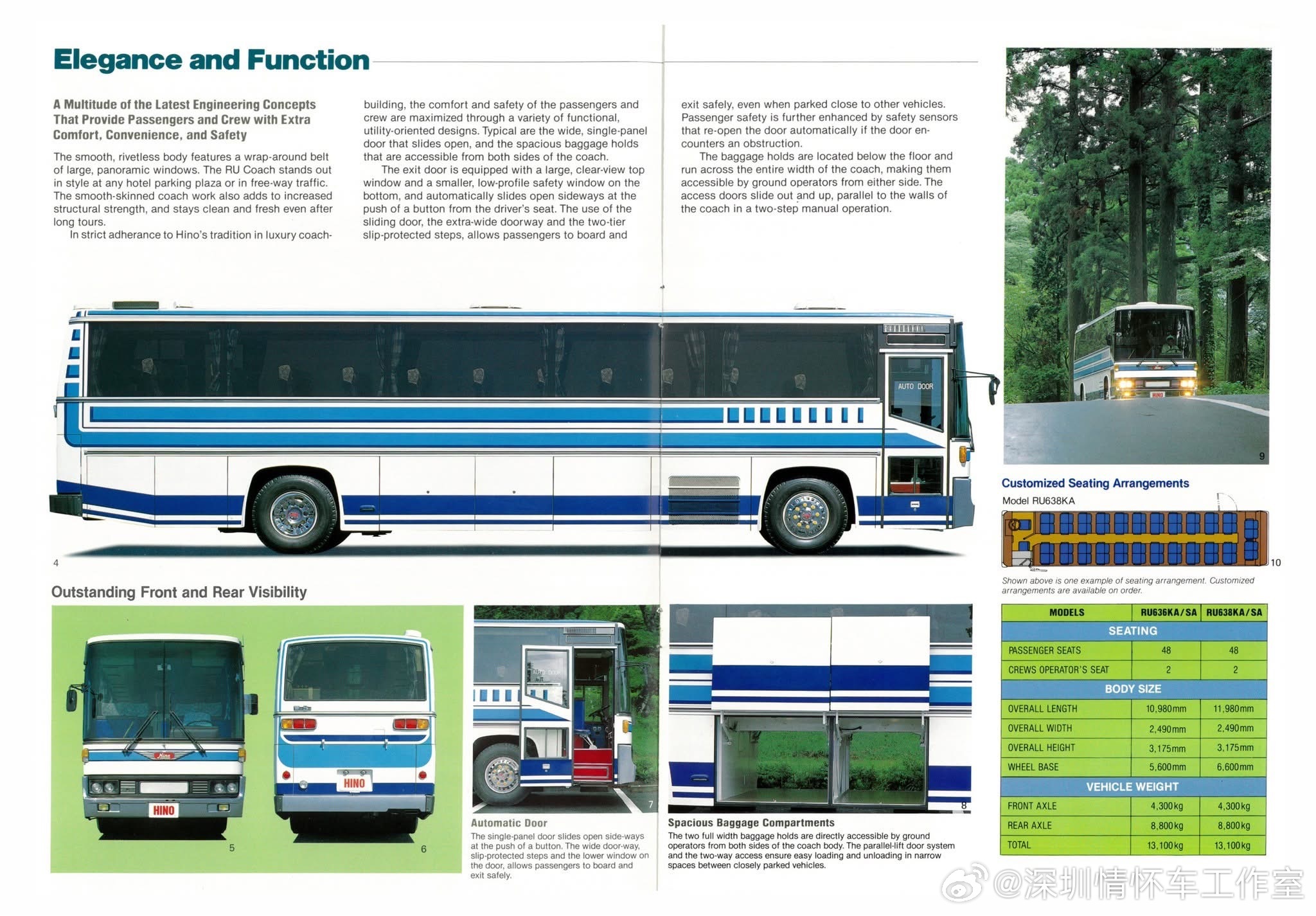 80年代日野客车高端系列RU,RU系列主打高端豪华长途客运与旅游市场。可惜这一系列没有进入过国内。进入国内市场的是RC中端系列,80年代初起,通过中国机械进出口总公司批量进口日野RC401/RC421等车型,设北京零件供应中心保障售后。代表车型:RC421(后置6缸柴油机/215马力、空气悬架、独立柴油空调,舒适性与可靠性突出)。用途:外事接待、高端旅游、城际客运、大型国企通勤班车。 口碑:噪音低、空气悬架舒适,被称为“开不烂”,成为80-90年代国内高端客车标杆。