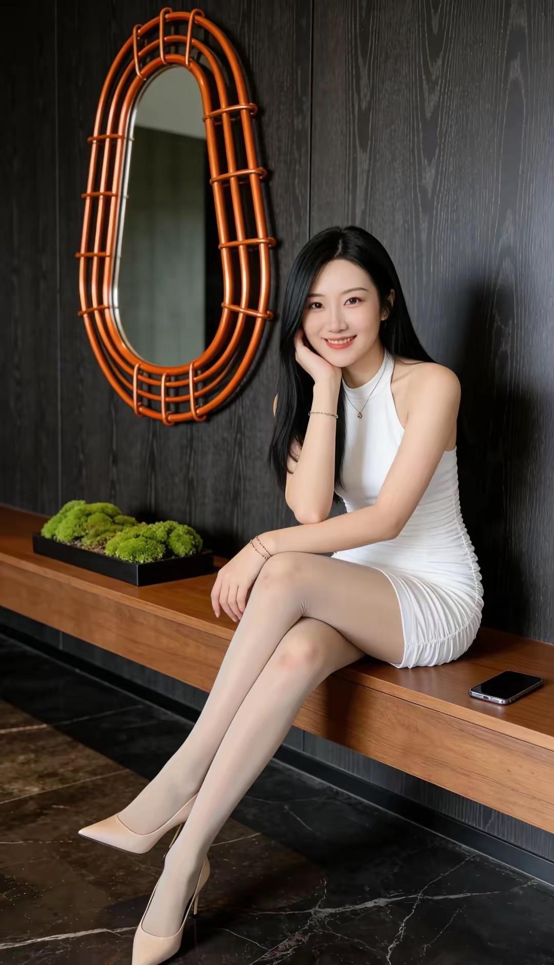 优雅白裙,镜前自拍照,时尚穿搭指南