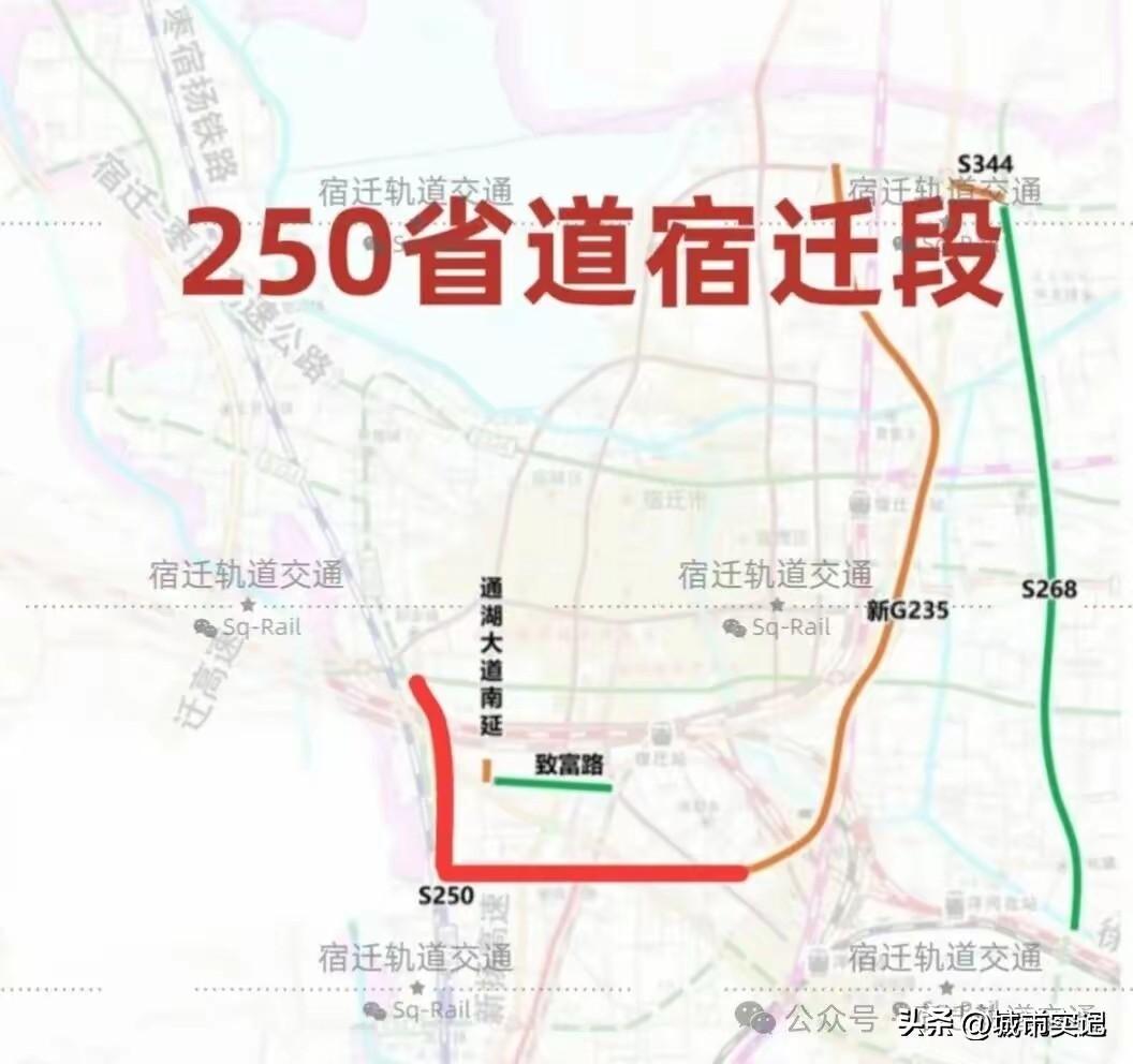 宿迁s250省道南延,到埠子g235汇合组成宿迁外环路,一路去邳州,一路去新沂。
