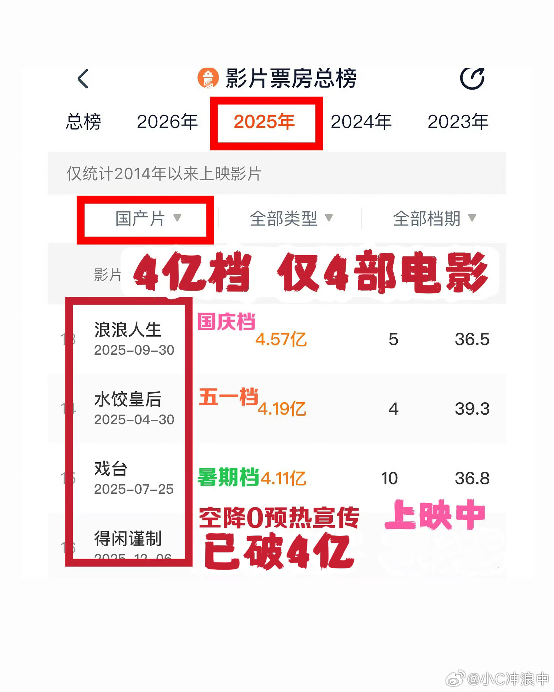 得闲谨制票房破4亿肖战得闲谨制票房破4亿➤ 9.7分高分年度黑马 肖战主演《得闲谨制》!➤10次票房逆跌,累计票房破4亿 口碑票房双丰收!➤肖战票房底盘4亿+2025国产片4亿档仅4部!➤“冷档空降0宣发 档期遇 动物城/ 阿凡达”➤最低0.4%排片+低成本,全靠口碑发酵/肖战号召力/观众口碑相传!票房口碑超过多档期热门大制作!➽2025肖战影视歌全面开花!微博之夜肖战复古运动造型肖战北京台春晚灯塔充满诗意 微博之夜抢座101