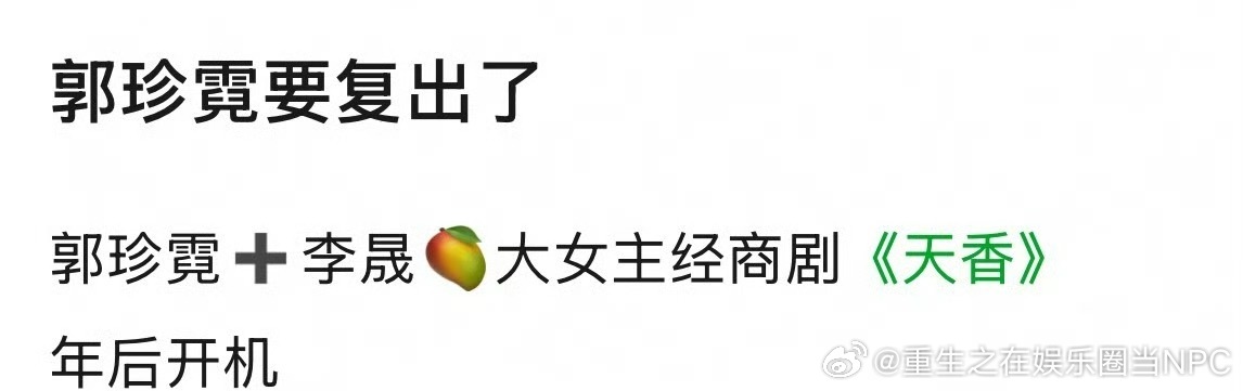 郭珍霓➕李晟大女主经商剧《天香》年后开机 郭珍霓要复出了