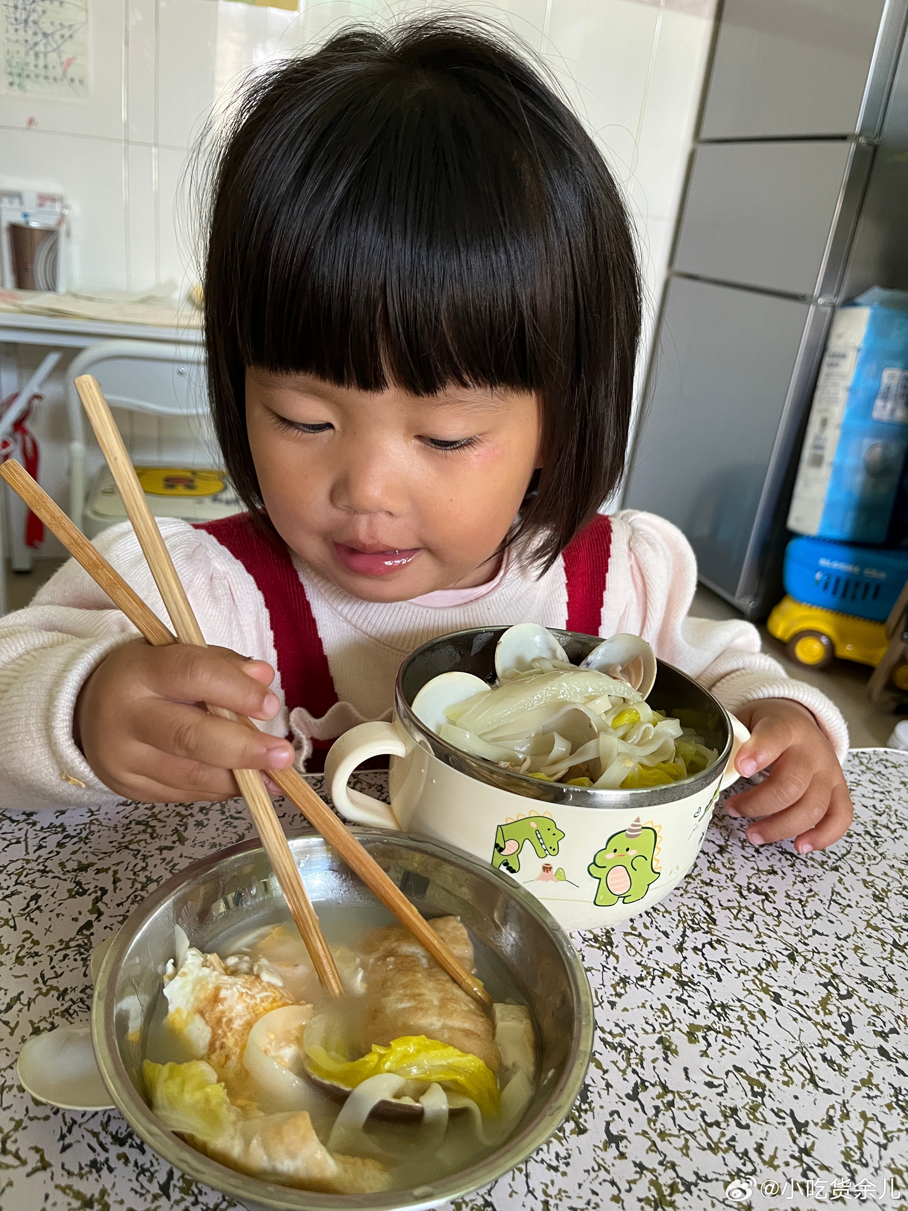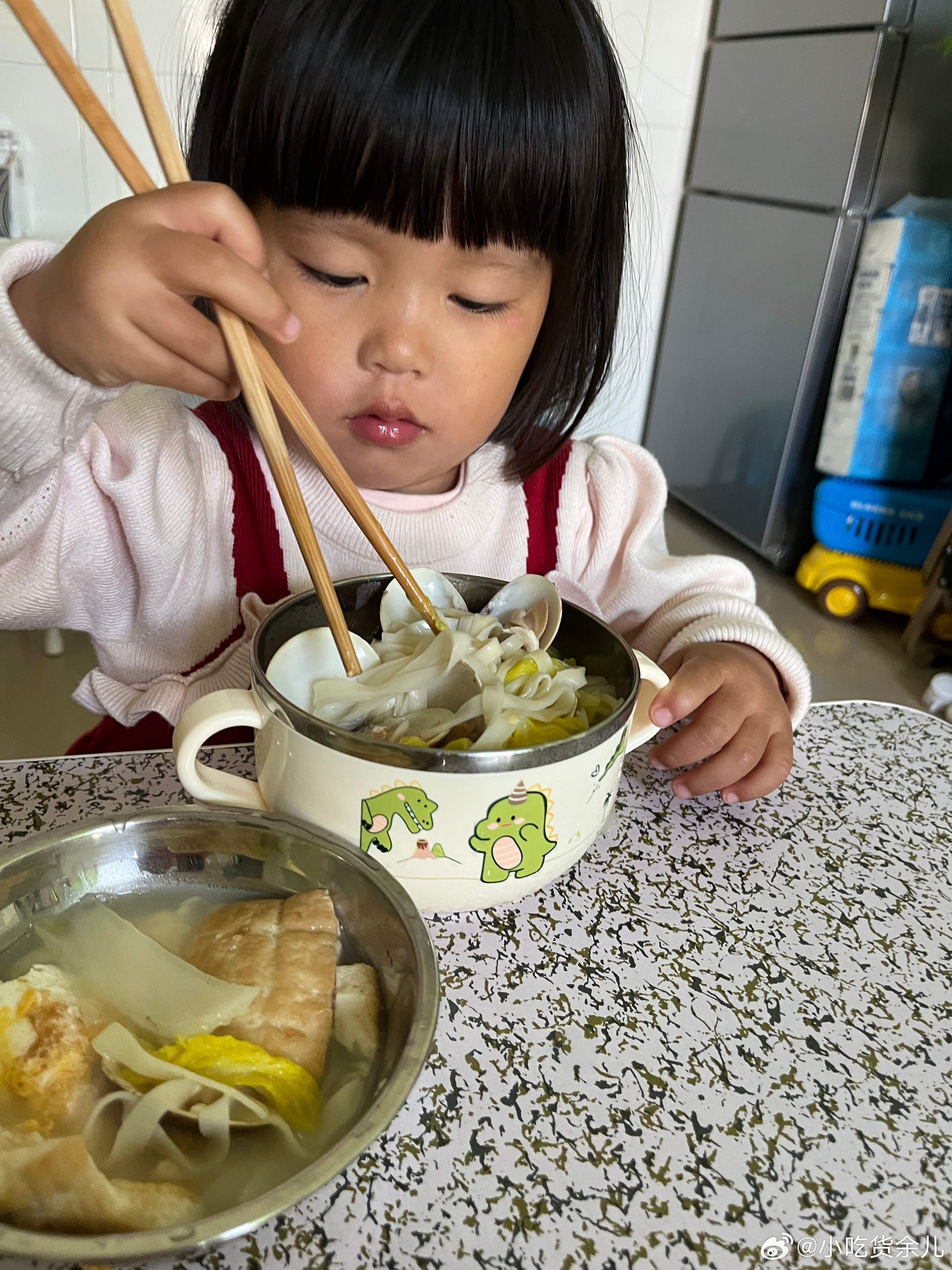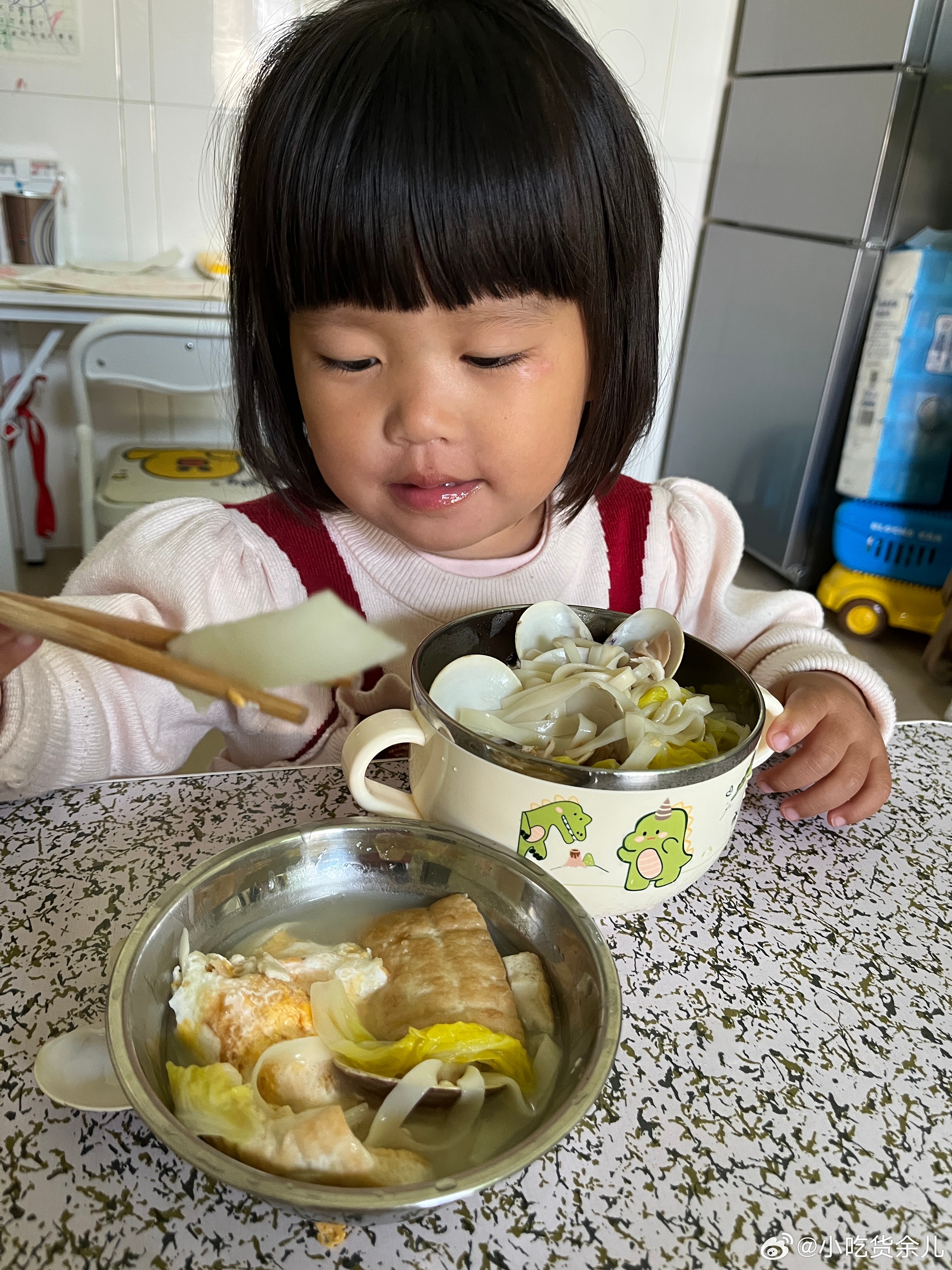 吃饭了,说要吃面,煮了海鲜面给她吃。