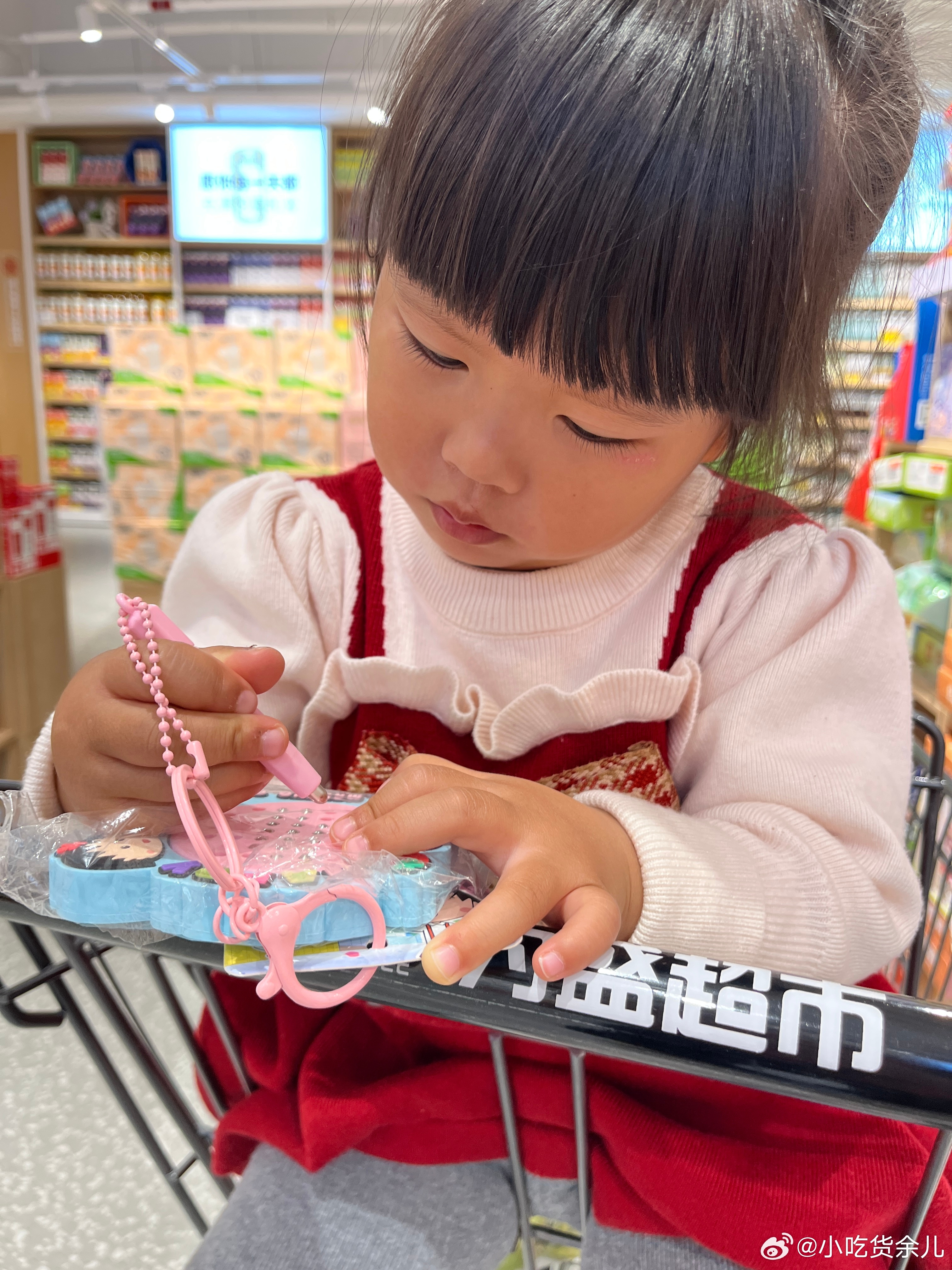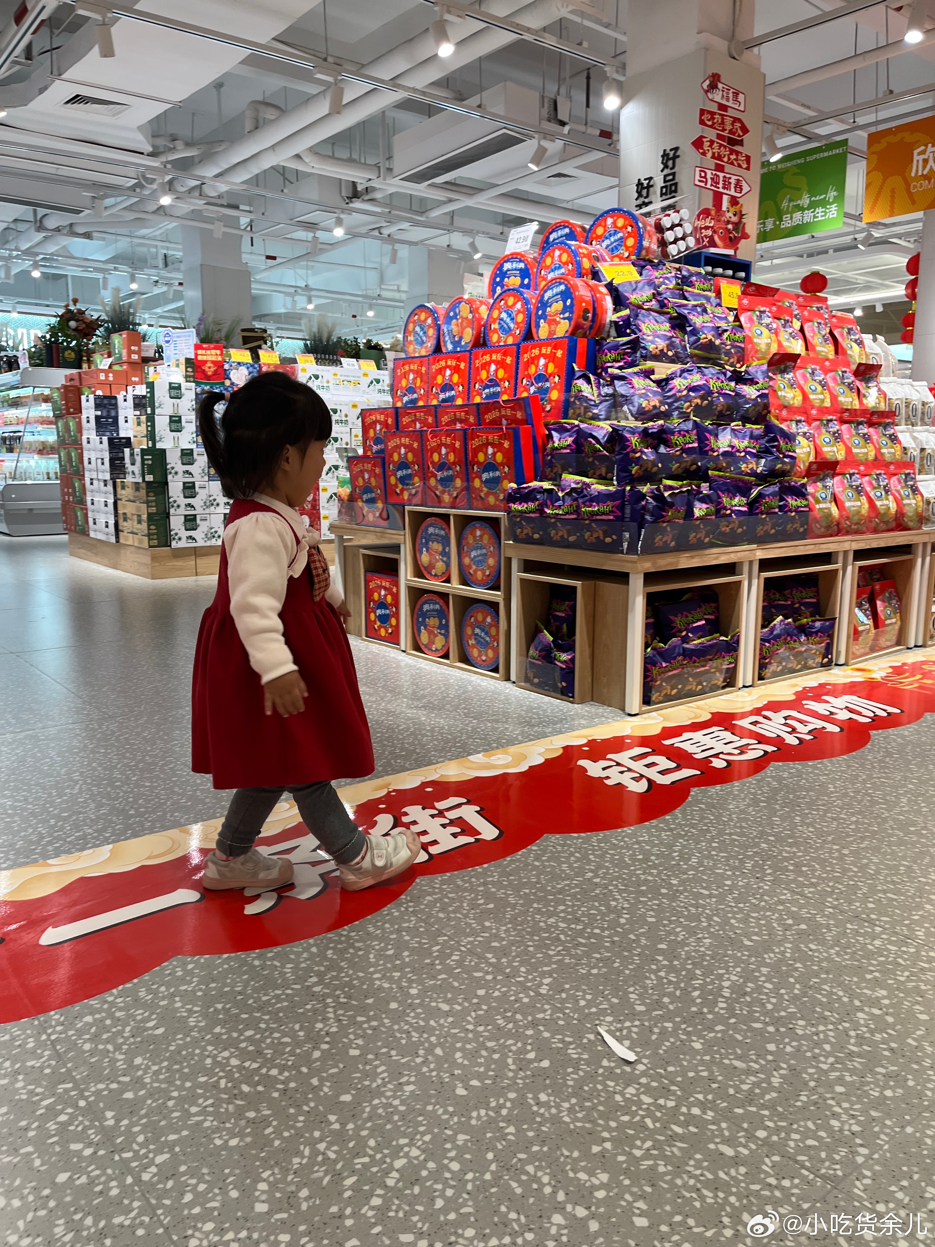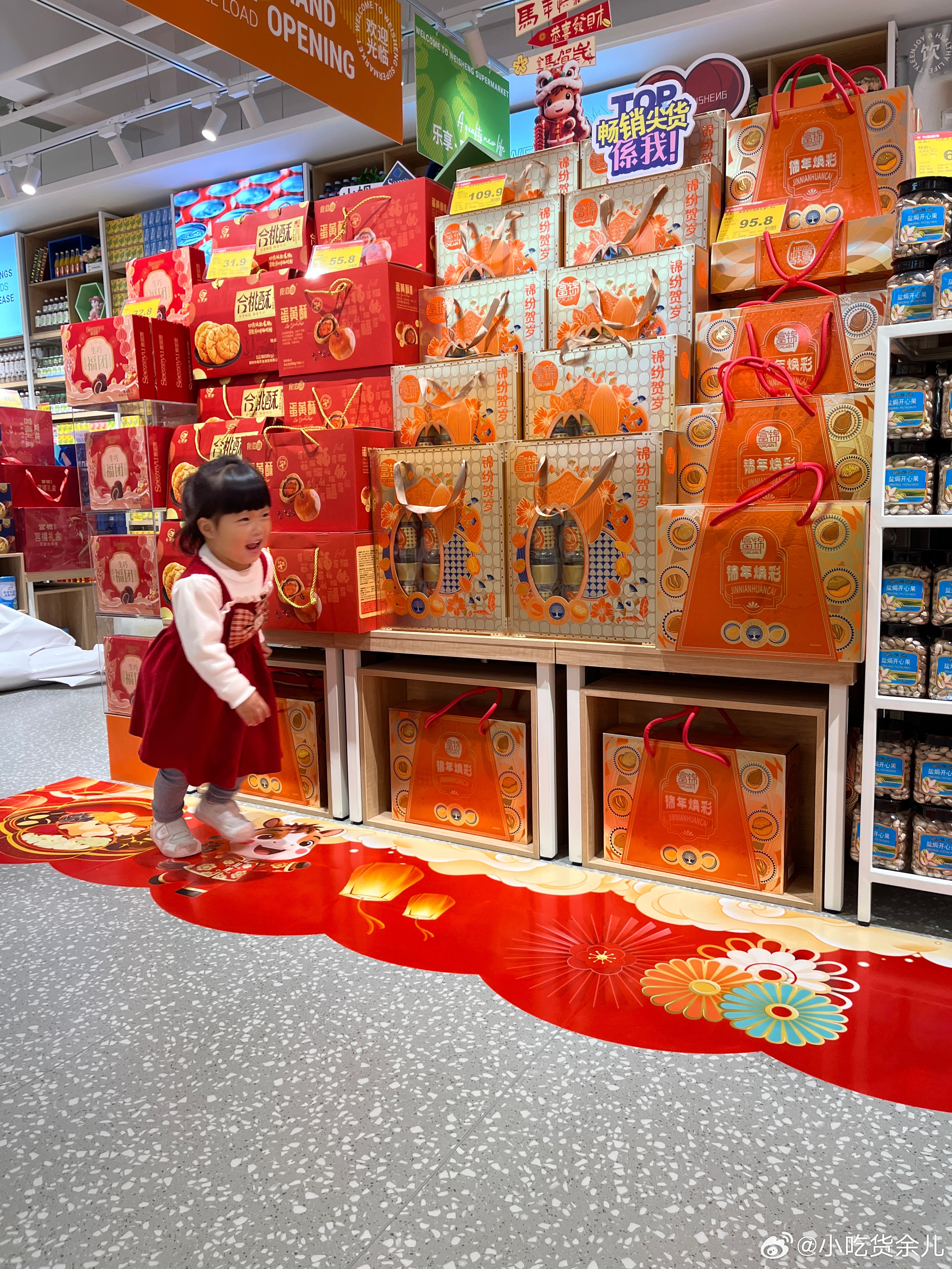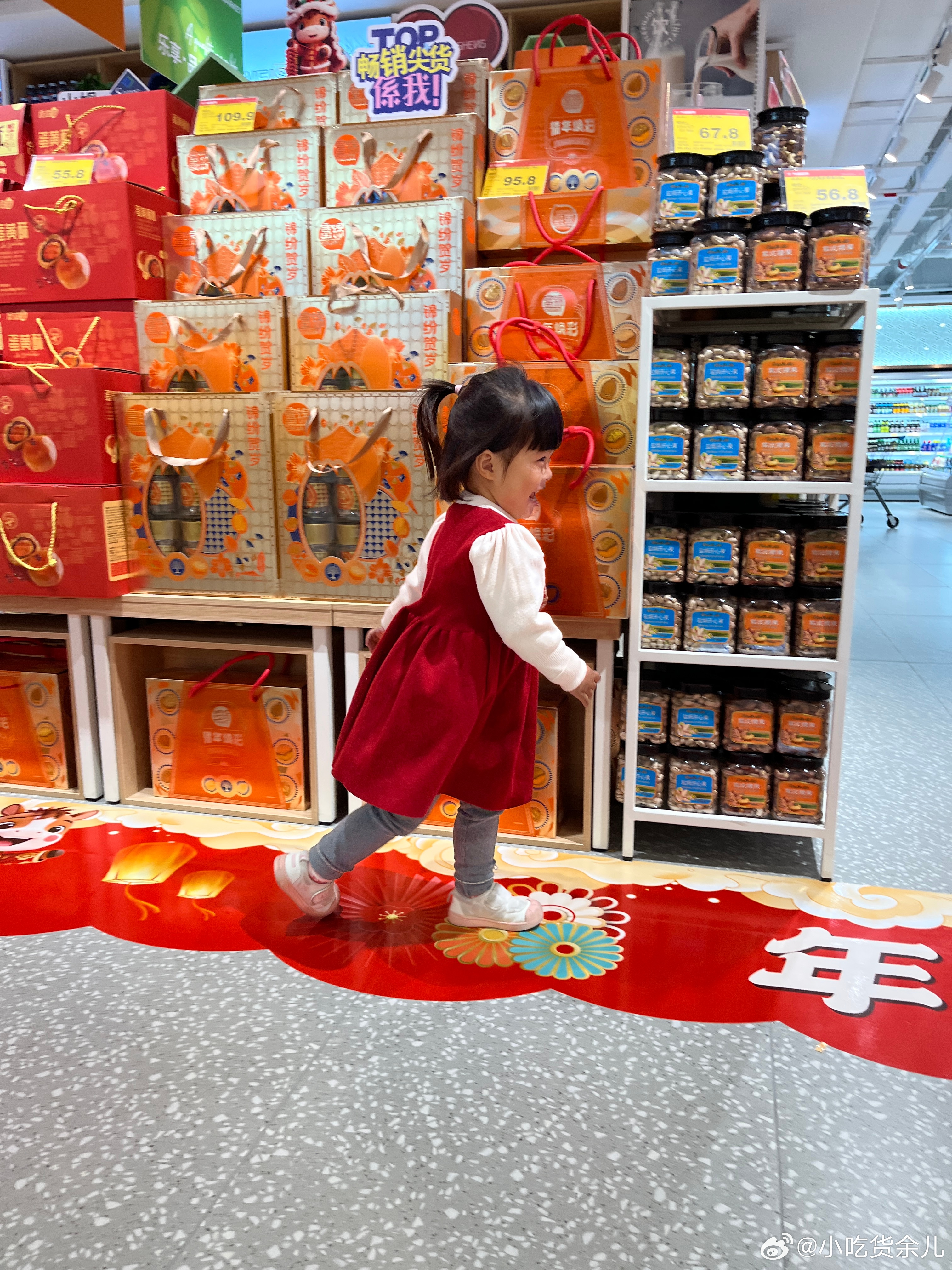 图一的篮子好喜欢,觉得这种编的篮子太好看了。图二在看人家装灯笼,说她学校也有,要看一下。看到图三、图五走不动了,什么都想买,我说等你大一点先,前几天在名创优品买的贴纸,不会玩,全部撕烂了。图六别人贴好的横幅,她说能不能过去踩一下,我说可以,这里是卖年货的地方,就是让你们看的。好开心,问是不是过年了。
